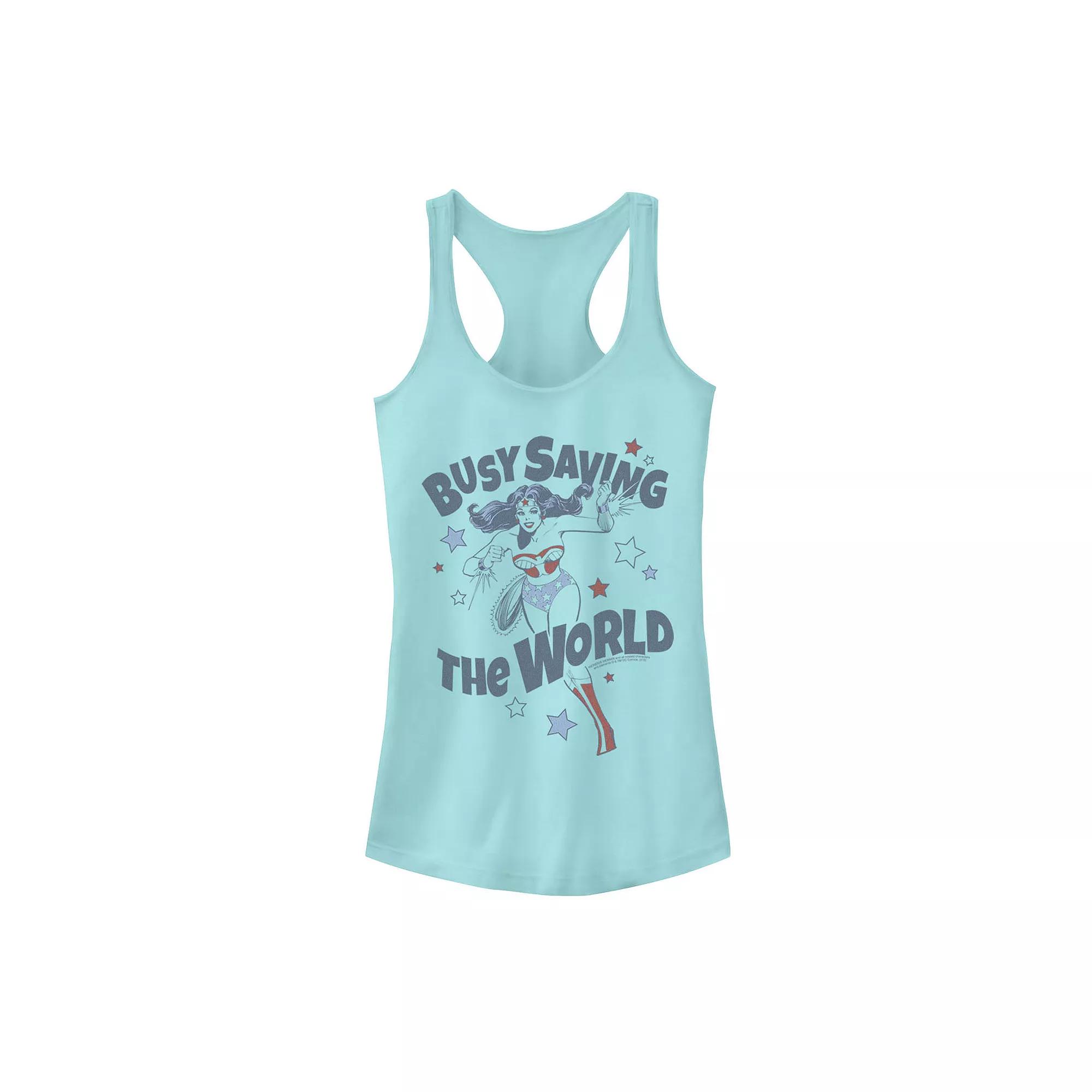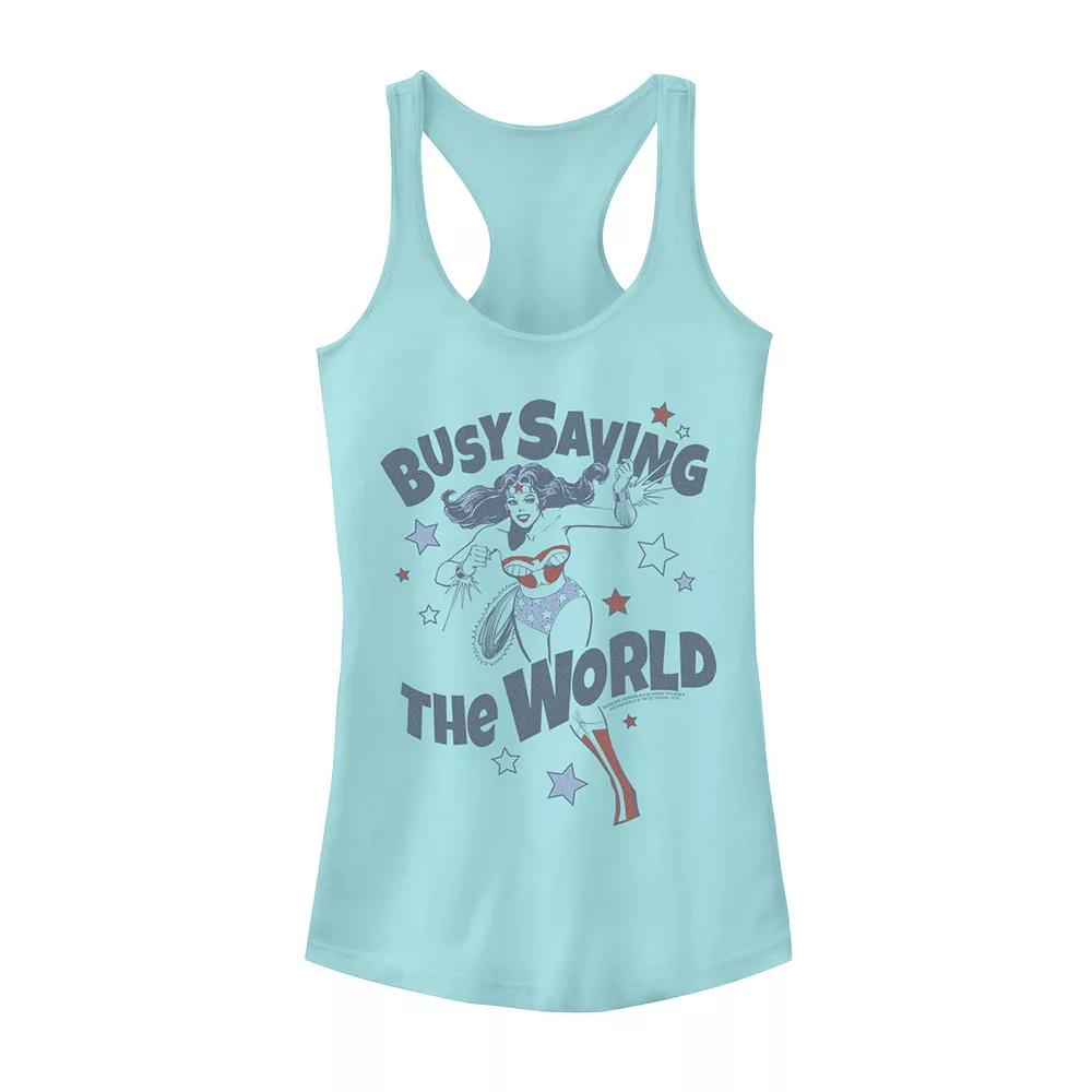 You're little one is sure to love the look of this juniors' DC Comics Wonder Woman "busy saving the world" tank top. You're little one is sure to love the look of this juniors' DC Comics Wonder Woman "busy saving the world" tank top. Scoopneck Sleeveless Jersey constructionFABRIC & CARE Cotton, polyester Machine wash Imported Size: Small. Color: Blue. Gender: female. Age Group: kids. Pattern: Graphic.