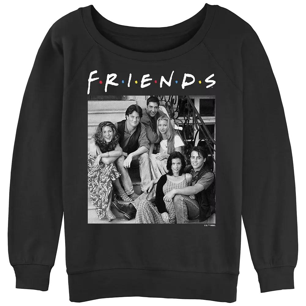 Pivot your look with this classic Juniors Friends Stairs Group Photo Graphic Slouchy Terry Pullover. FEATURES Long sleeves CrewneckFABRIC & CARE Polyester, cotton Machine wash Imported Size: Large. Color: Black. Gender: female. Age Group: adult.