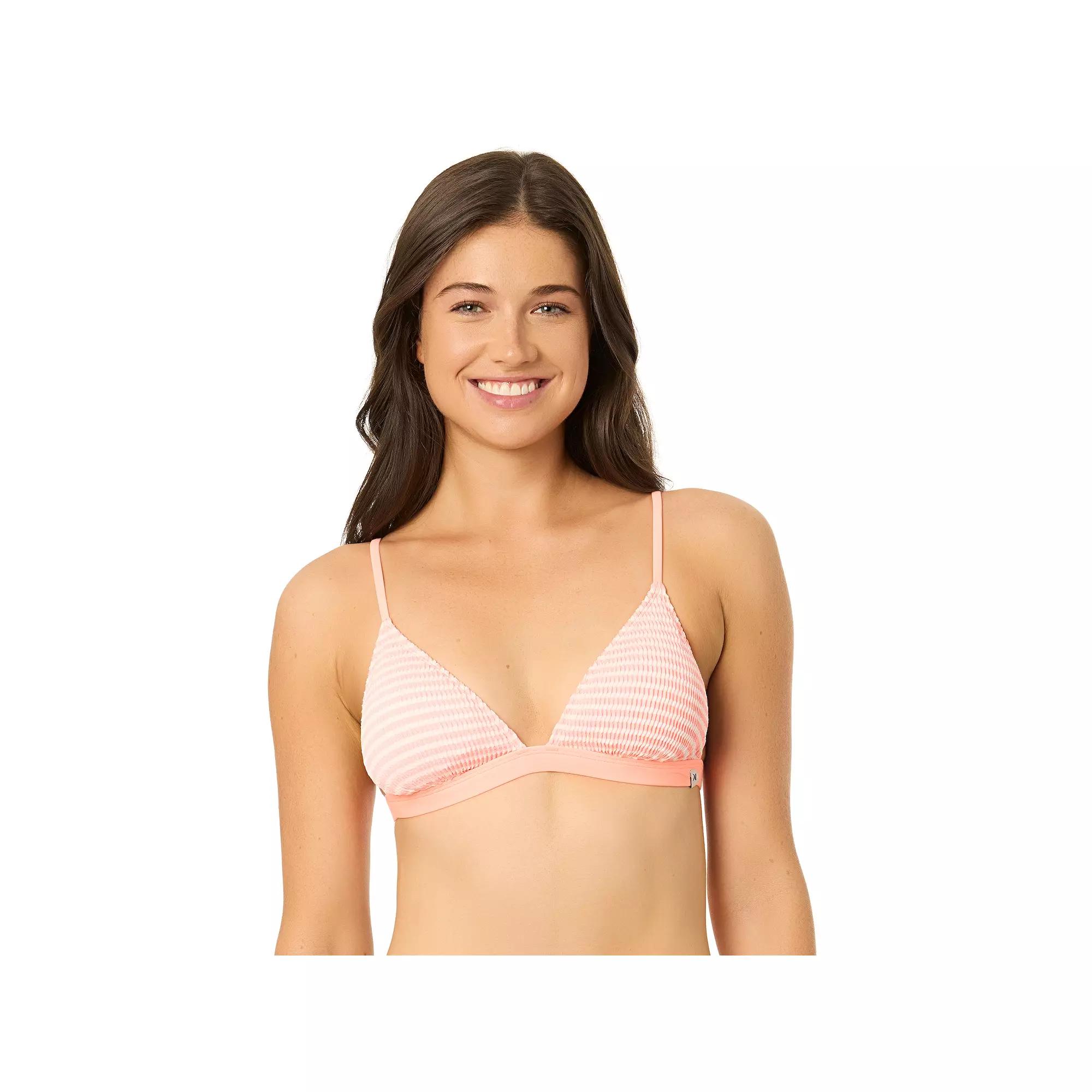 Dive into summer fun with the Hurley Rib Stripe Triangle Swim Top, designed to offer both style and support. Featuring adjustable straps and removable cups for a customizable fit, this fully lined swim top delivers a secure yet flattering silhouette, making it perfect for pool days or beach adventures while ensuring sun protection with UPF 50+. Click on this WOMEN'S GUIDE to find the perfect fit and more! - https://www.kohls.com/feature/womens-fit-guide.jsp. FEATURES: Removable cups, Moderate coverage, Soft, stretchy tricot construction, UPF 50+ sun protection, Hook & loop closure, Sleeveless, Partially lined, Wireless, V-neck. FIT & SIZING: Adjustable over the shoulder straps and back band. FABRIC & CARE: Polyester, Polyester lining, Machine wash, Imported. Size: Large. Color: Mango. Gender: female. Age Group: adult. Material: POLYESTER SPANDEX.