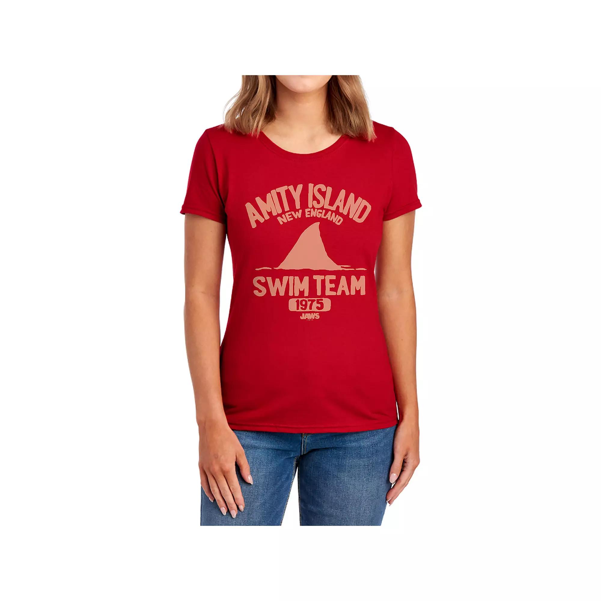 Dive into summer vibes with this fun tee that embraces the spirit of Amity Island's legendary swim team. With a ribbed round neckline and a relaxed fit, it offers both comfort and style, making it perfect for beach days or just chilling at home while dreaming of ocean adventures. Click on this WOMEN'S GUIDE to find the perfect fit and more! - https://www.kohls.com/feature/womens-fit-guide.jsp. FEATURES: Ribbed round neckline for added comfort. MATERIAL & CARE: Body: cotton, polyester, rayon, Machine wash and tumble dry low. DETAILS: Crewneck, Short sleeves, Imported. Color: Red. Gender: female. Age Group: adult. Pattern: graphic.