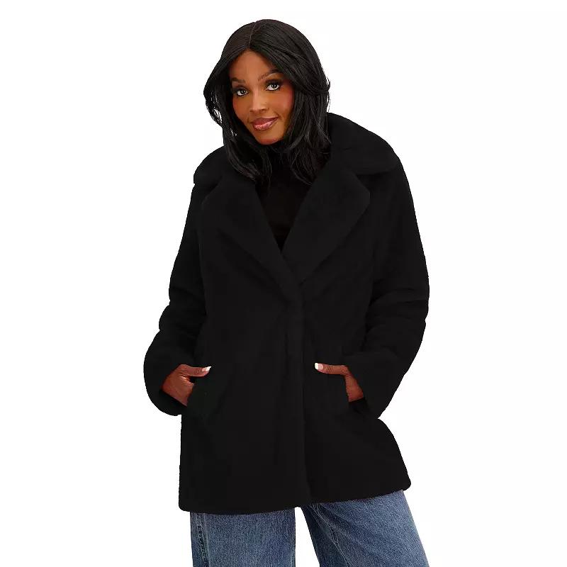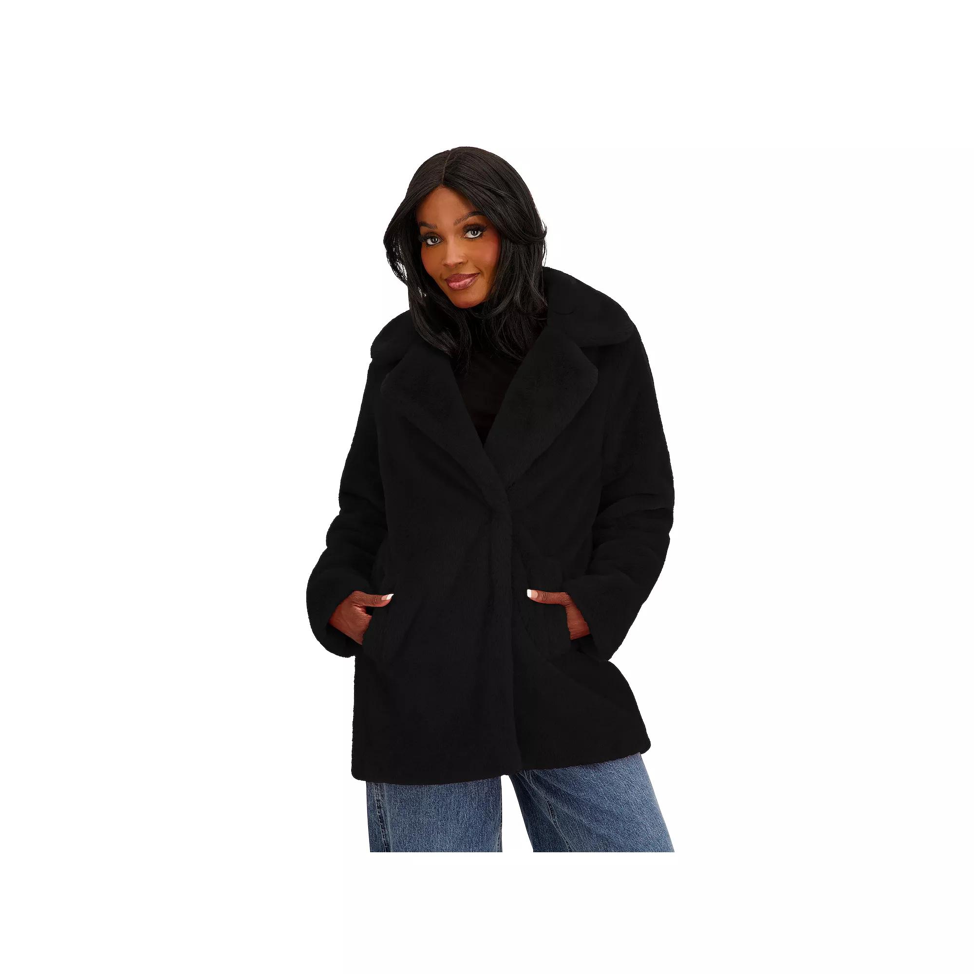 Wrap yourself in cozy elegance with this fabulous faux fur coat from madden girl. Perfect for chilly outings or just showing off your style, it effortlessly combines chic warmth with that touch of fun—because who says fashion can't be as snuggly as your favorite blanket? Click on this WOMEN'S GUIDE to find the perfect fit and more! - https://www.kohls.com/feature/womens-fit-guide.jsp. FEATURES: Heavyweight construction for superior warmth, Ideal for cold weather conditions. FIT & SIZE: Regular fit, 30 1/2-in. length from shoulder to hem, Designed to hit above the knees. MATERIAL & CARE: Body: 100% polyester, Lining: 100% polyester, Fully lined, Product contains faux fur, Machine wash. DETAILS: Button closure, Long sleeves, 2 waist pockets, Imported. Size: Medium. Color: Black. Gender: female. Age Group: adult.