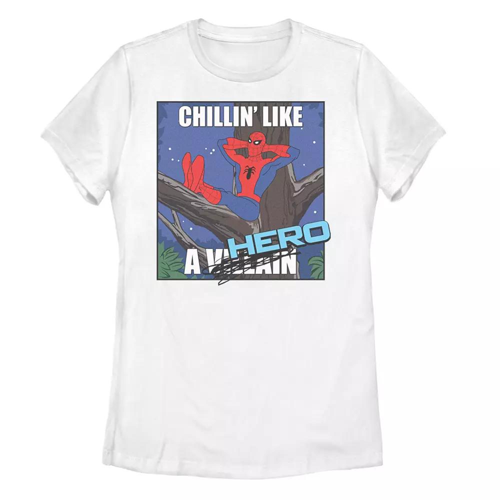 Upgrade your super hero wardrobe with this classic Marvel Spiderman Chillin Like A Hero Panel Tee! Upgrade your super hero wardrobe with this classic Marvel Spiderman Chillin Like A Hero Panel Tee! Short sleeve white Crewneck Jersey constructionFABRIC & CARE Imported Machine wash - Delicate Cotton Size: Medium. Gender: female. Age Group: kids. Pattern: Graphic.