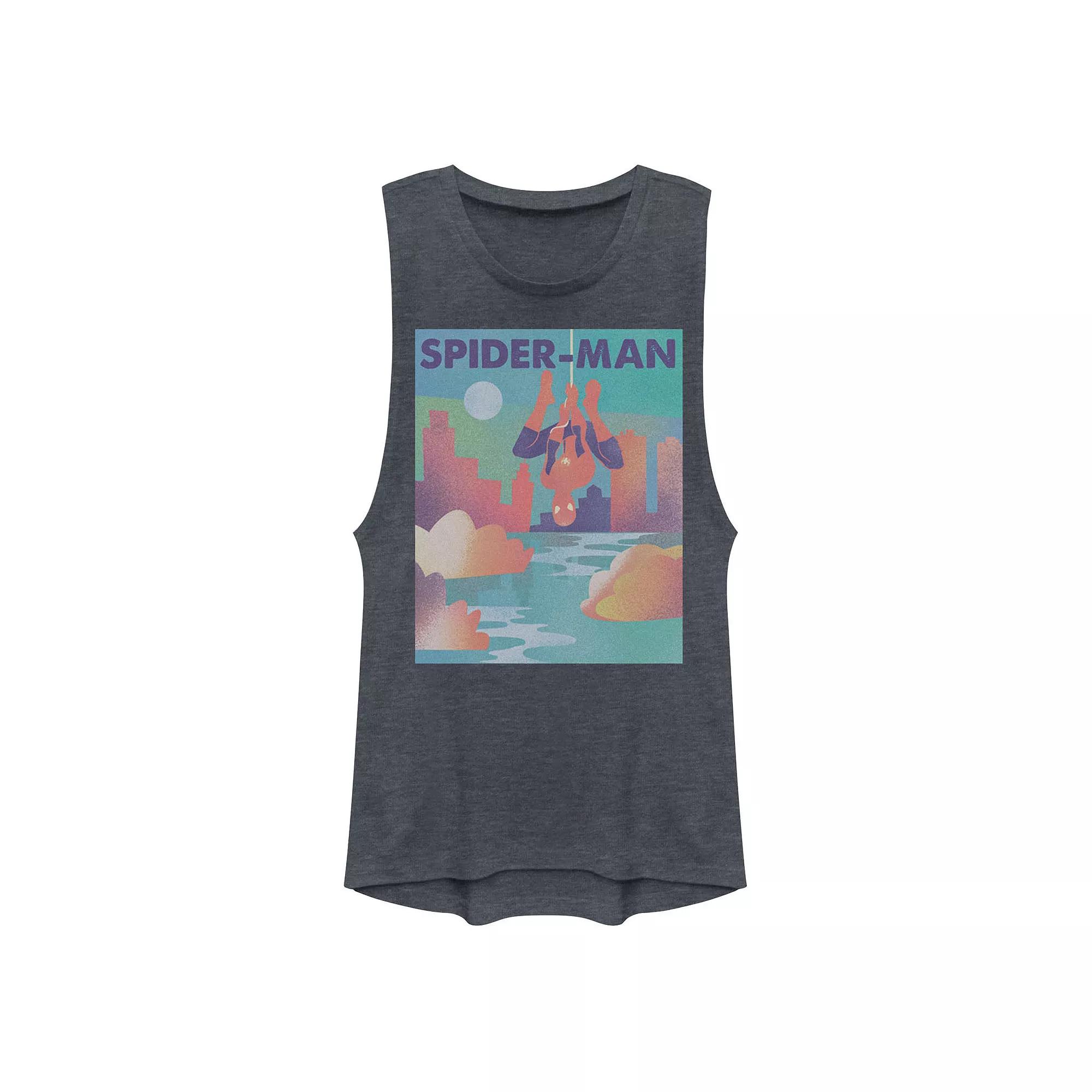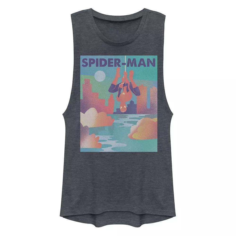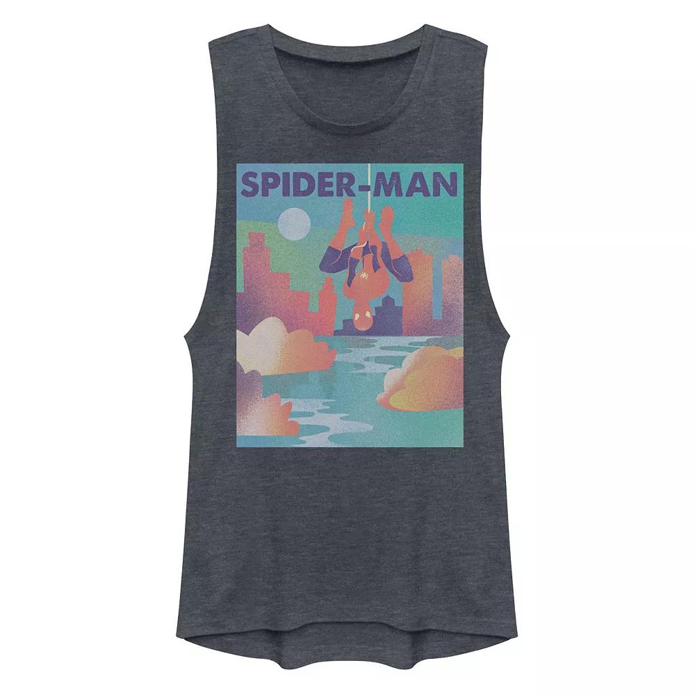 Show love for your favorite superhero with this juniors Spider-Man skyline graphic muscle tank top. Show love for your favorite superhero with this juniors Spider-Man skyline graphic muscle tank top. Spider-Man and city skyline graphics CrewneckFABRIC & CARE Polyester, cotton Machine wash - Delicate Imported Size: Medium. Color: Blue. Gender: female. Age Group: kids. Material: Cotton Blend.