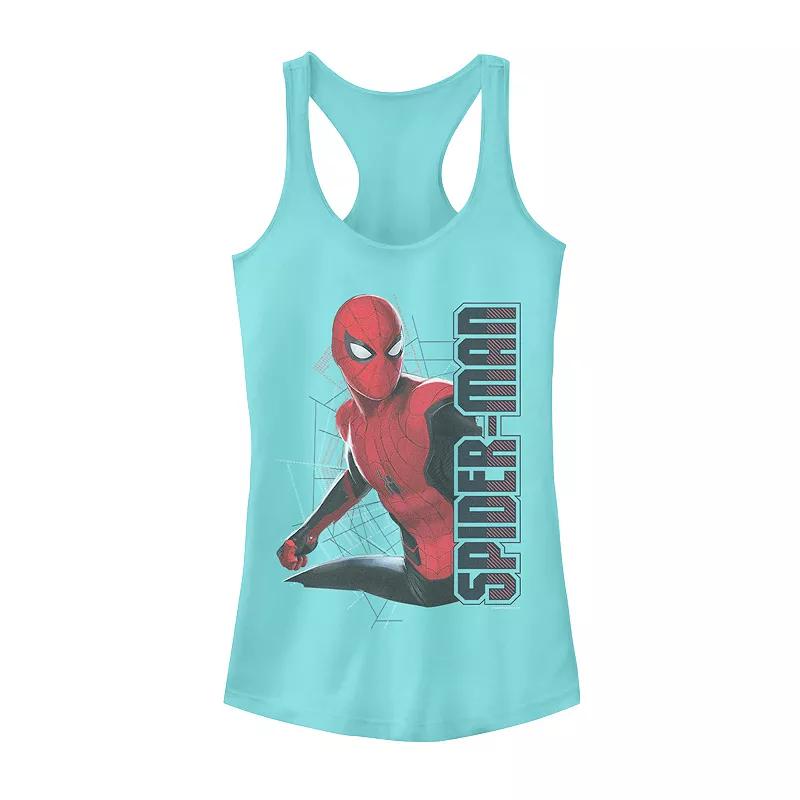 With great style comes great responsibility. Get your style swinging with this Spider Man themed tank top. With great style comes great responsibility. Get your style swinging with this Spider Man themed tank top. Jersey construction CrewneckFABRIC & CARE Cotton, polyester Machine wash - delicate Imported Size: Small. Color: Blue. Gender: female. Age Group: kids. Pattern: Graphic.