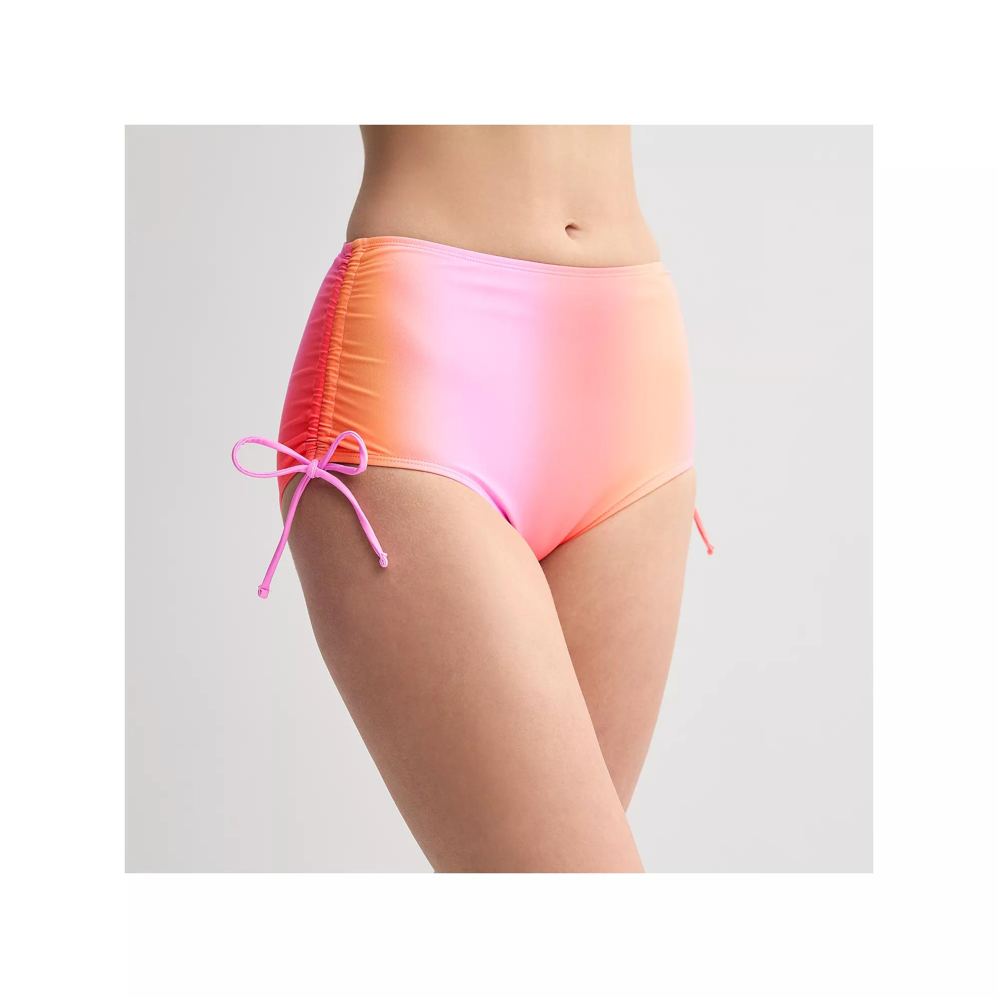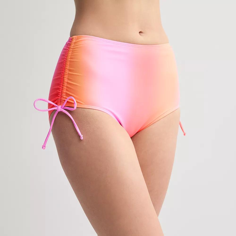 Splish and splash in the sun in these Juniors' Ninety-Nine° Cinched High Waist Swim Bottoms. Click on this WOMEN'S GUIDE to find the perfect fit and more! - https://www.kohls.com/feature/womens-fit-guide.jsp. FEATURES: Moderate coverage, Soft construction, No closure - pull-on styling, Unlined gusset, Partially lined. FIT & SIZING: High rise sits below the natural waistline, Drawstring elastic waistband. FABRIC & CARE: 84% recycled polyester, 16% spandex, 100% recycled polyester lining, Hand wash and line dry, Imported. RESPONSIBLE Contains recycled polyester. Size: Small. Color: Solar Bliss. Gender: female. Age Group: adult. Material: POLY BLEND.