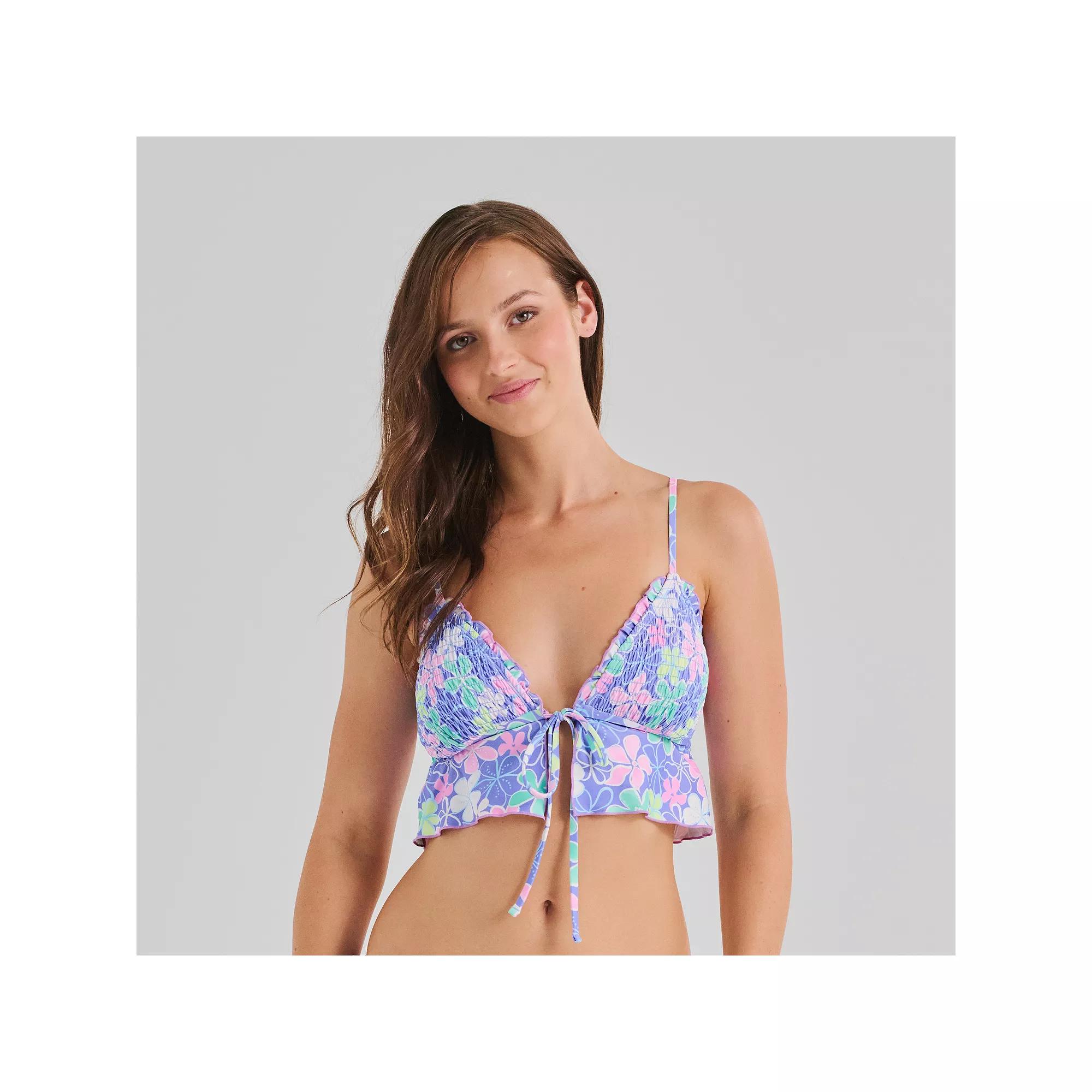 Stay chic with the Juniors' Ninety-Nine Degrees Smocked Merrow Edge Midkini, combining smocked fabric and delicate merrow edge accents with a stylish floral design. Click on this WOMEN'S GUIDE to find the perfect fit and more! - https://www.kohls.com/feature/womens-fit-guide.jsp. FEATURES: Removable cups, Moderate coverage, Sleeveless, Partially lined, Unlined gusset, Wireless, Halter neckline, Contains recycled polyester. FIT & SIZING: Adjustable straps. FABRIC & CARE: 84% recycled polyester / 16% spandex, Lining: 100% recycled polyester, Hand wash and line dry, Imported. Size: Small. Color: Aloha Bliss. Gender: female. Age Group: adult. Material: POLY BLEND.