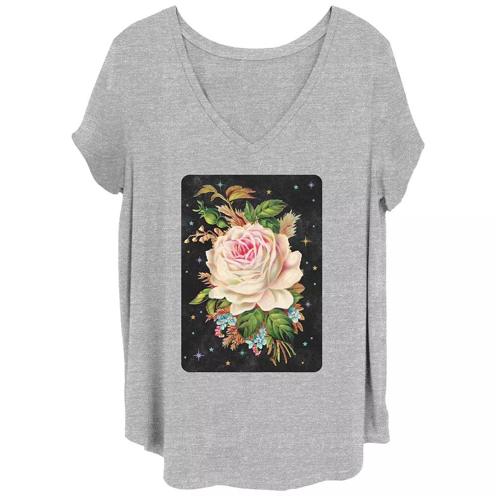 Juniors' Plus Celestial Rose Poster V-Neck Graphic Tee, Women's,
