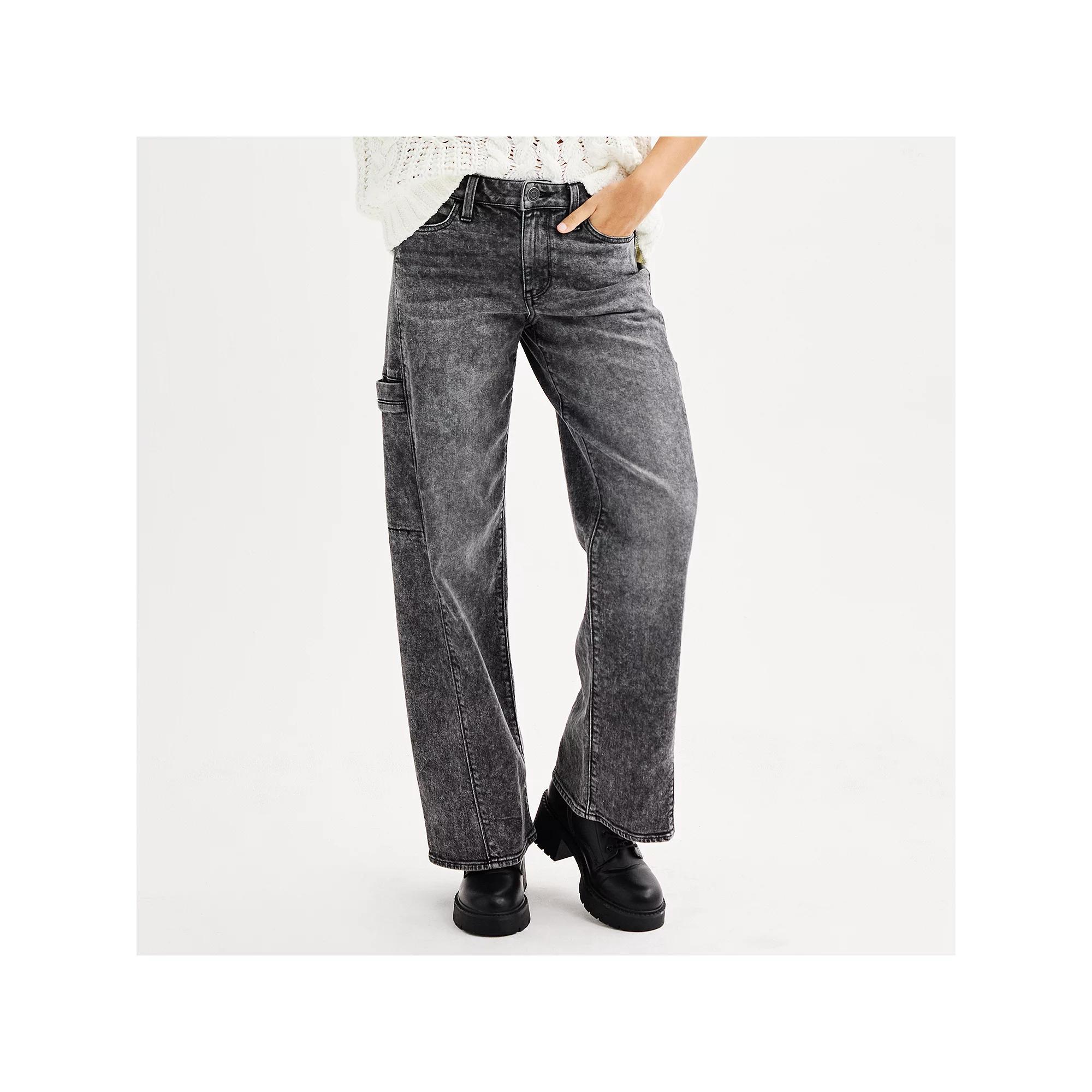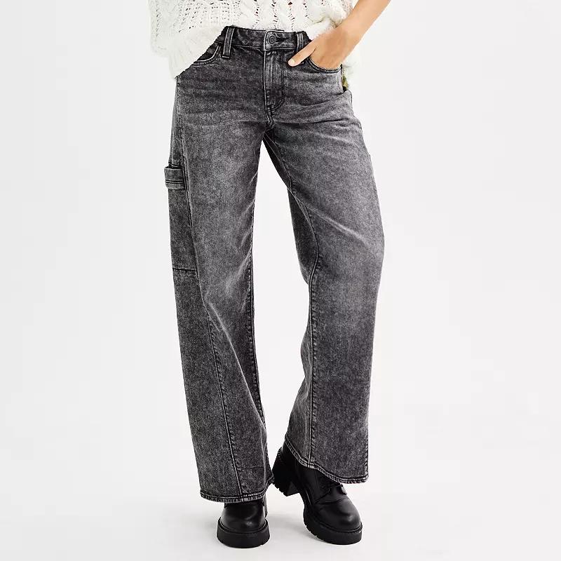 Pair these juniors high-rise wide-leg jeans from SO with a sweater, graphic tee, or a blouse. The possibilities are endless!Click on this WOMENS GUIDE to find the perfect fit and more! FEATURES Destructive detailing on some colors Button and zipper closure Traditional 5-pocket design UnlinedFIT & SIZING Relaxed fit through the hip and thigh Average: 30-in. inseam length Short: 28-in. inseam length Tall: 32-in. inseam length Straight leg openingFABRIC & CARE 64% cotton, 35% recycled polyester, 1% spandex; 55% cotton, 22% recycled polyester, 22% lyocell, 1 % spandex Machine wash ImportedRESPONSIBLE Tested for harmful substances STANDARD 100 by OEKO-TEX CERTIFIED Certification No. 20HBD.10569 Testing Institute: Hohenstein Textile Testing Institute www.oeko-tex.com/standard100 Contains recycled polyester Size: 7 Short. Color: Grey Wash. Gender: female. Age Group: adult.