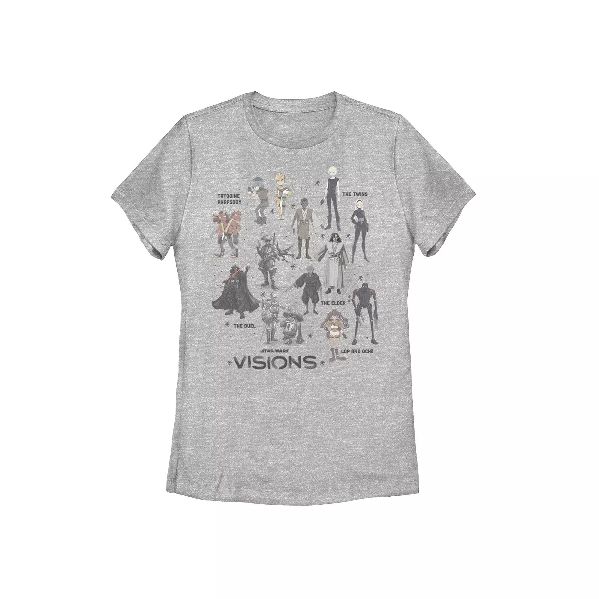 Featuring an all-star cast of characters, this juniors Star Wars: Visions graphic tee is a perfect choice for any fan of the futuristic animated space saga. Featuring an all-star cast of characters, this juniors Star Wars: Visions graphic tee is a perfect choice for any fan of the futuristic animated space saga. Crewneck Short sleevesFABRIC & CARE Cotton, polyester Machine wash Imported Size: Medium. Color: Grey. Gender: female. Age Group: adult.