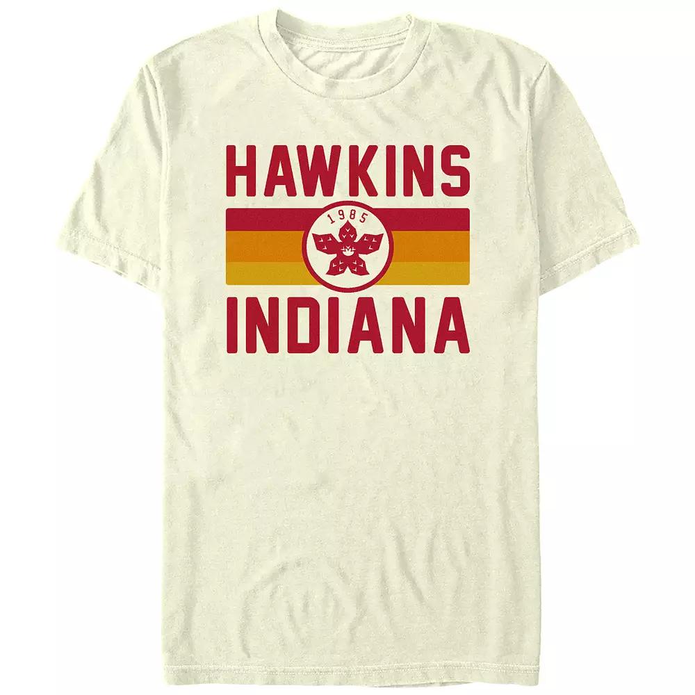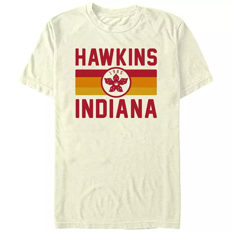 She'll love the look and feel of this Juniors' Stranger Things Hawkins Indiana 1985 Boyfriend Graphic Tee. She'll love the look and feel of this Juniors' Stranger Things Hawkins Indiana 1985 Boyfriend Graphic Tee. FEATURES Crewneck Short SleevesFABRIC & CARE Cotton Machine wash Imported Size: Large. Color: Natural. Gender: female. Age Group: adult.