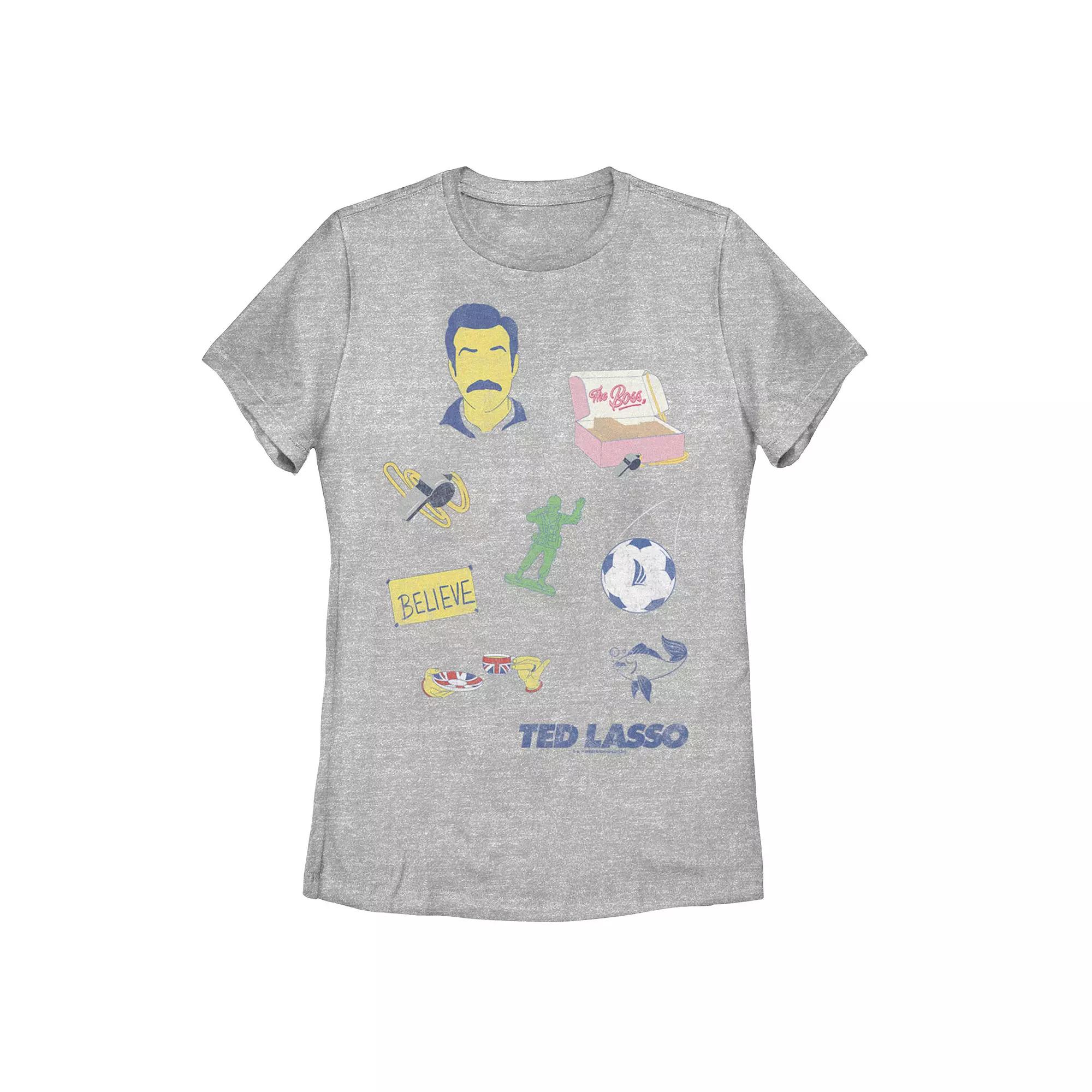 Youll love the comfy style of this juniors Ted Lasso Icons Graphic Tee. Youll love the comfy style of this juniors Ted Lasso Icons Graphic Tee. Crewneck Short SleeveFABRIC & CARE Cotton, polyester Machine wash Imported Size: Medium. Color: Grey. Gender: female. Age Group: adult. Material: Polyester|Cotton.