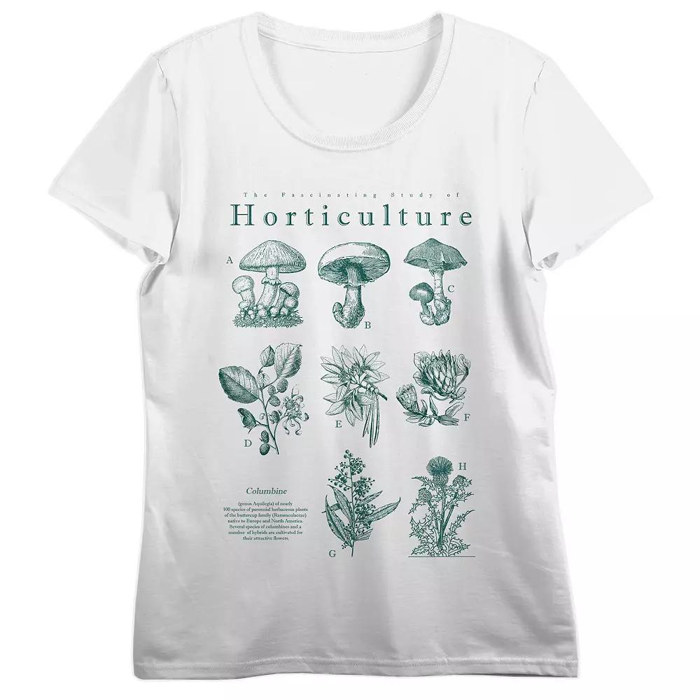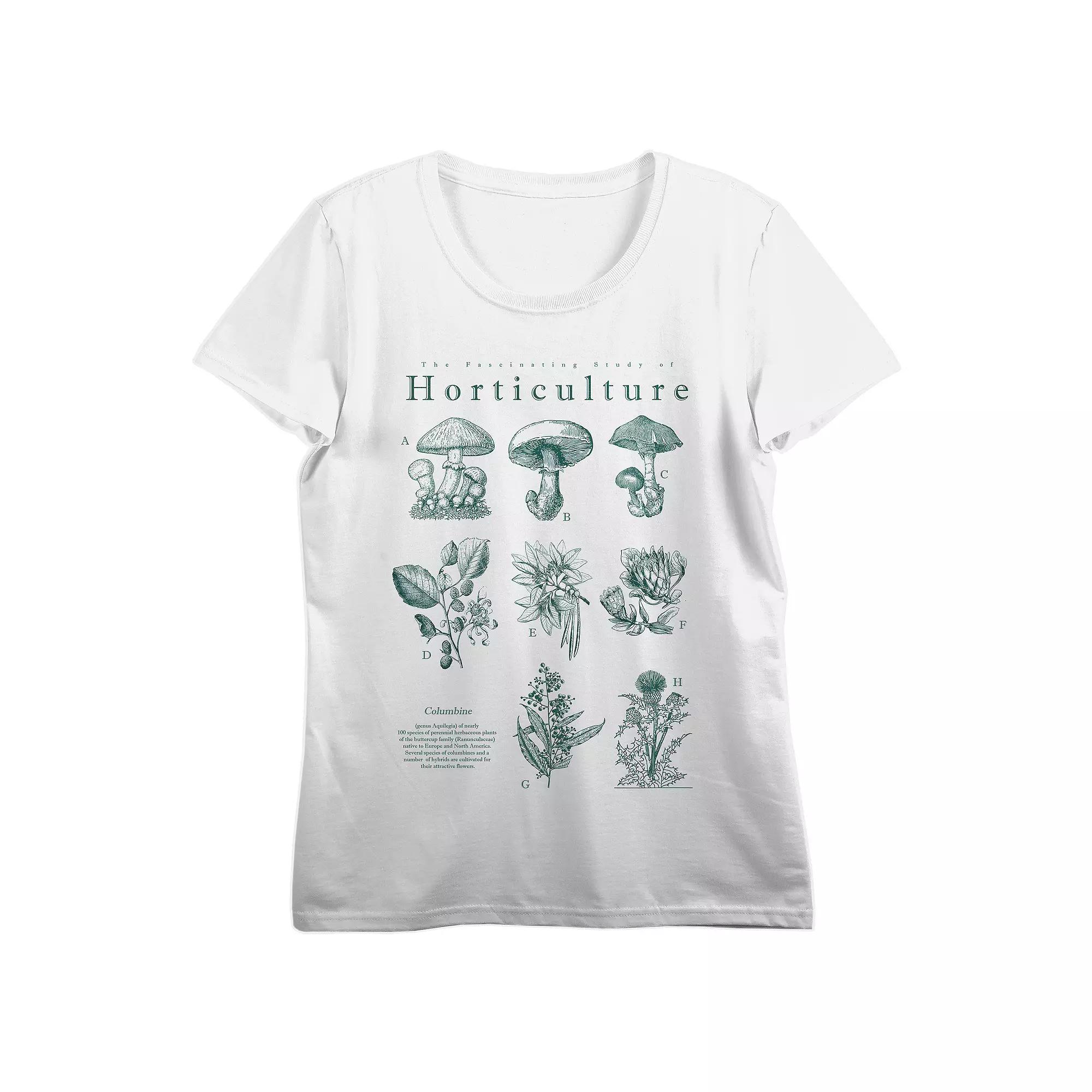 Shell love to show off her personal sense of style with this Juniors The Fascinating Study of Horticulture Plant Graphic Tee. FEATURES Soft knit construction Short sleeves CrewneckFABRIC & CARE Cotton Machine wash and tumble dry low Imported Size: Medium. Color: White. Gender: female. Age Group: adult.