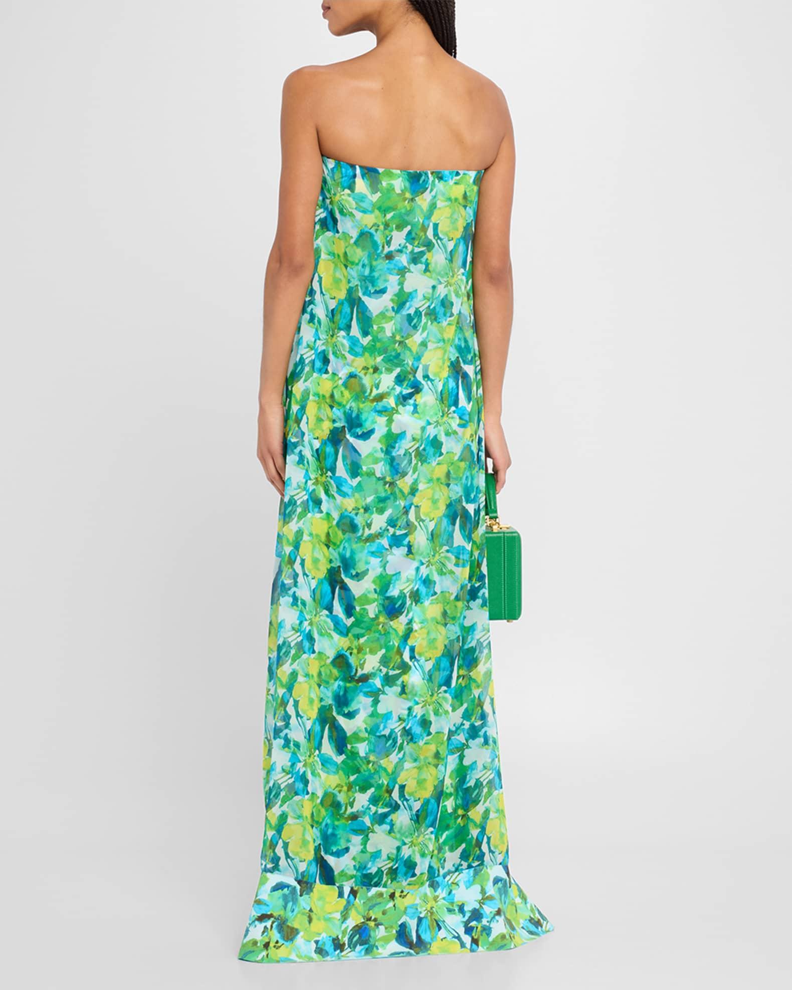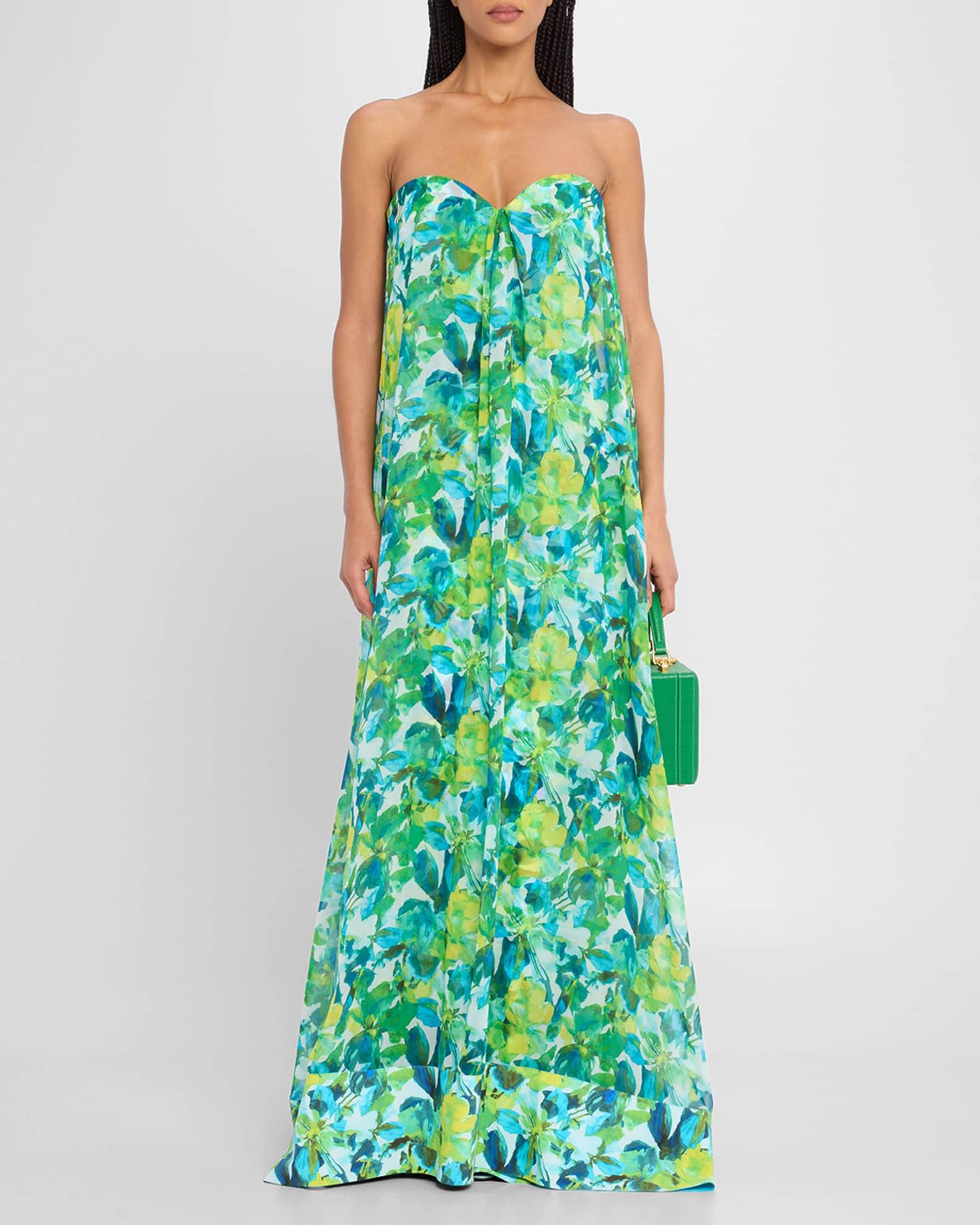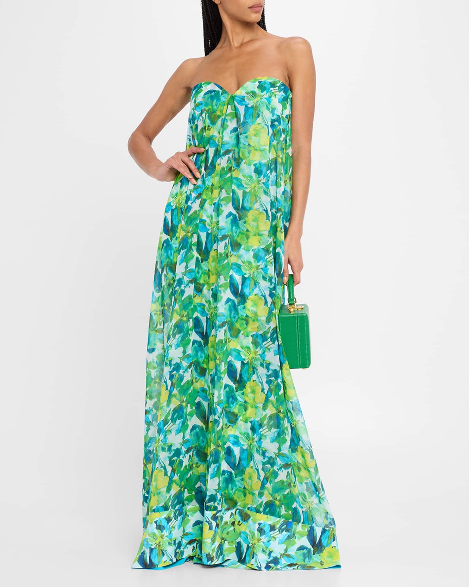 Junji Strapless Watercolor-Print Chiffon Gown