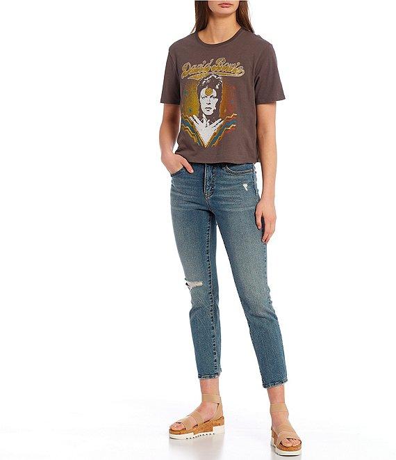 Junk Food David Bowie Cropped Glitter Graphic T-Shirt