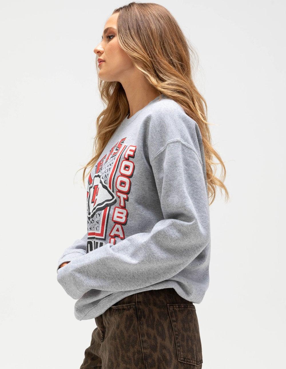 JUNK FOOD Kansas City Chiefs Backfield Womens Crewneck Sweatshirt - HEATHER GRAY