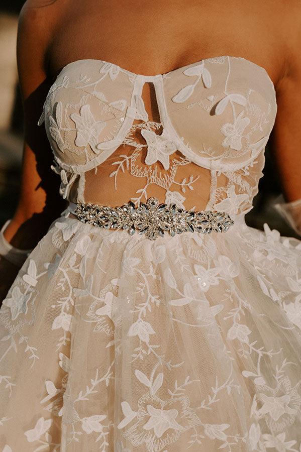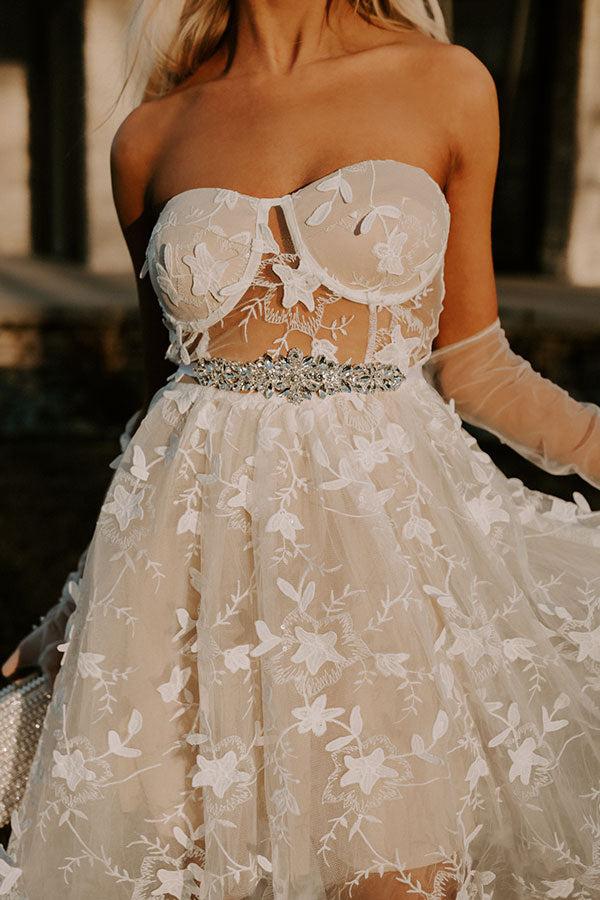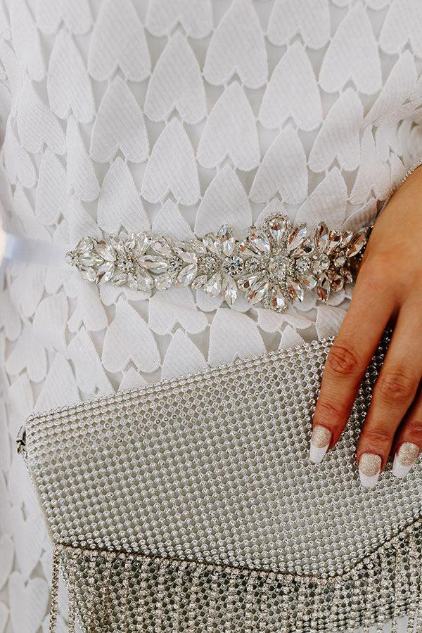 - Sparkle, twinkle, dazzle, and shine for any special occasion in this eye-catching statement piece! - This versatile piece can be tied on as a headband or a belt - Features an ornate rhinestone design and white satin ribbon - Embellishment Length: 8 Inches