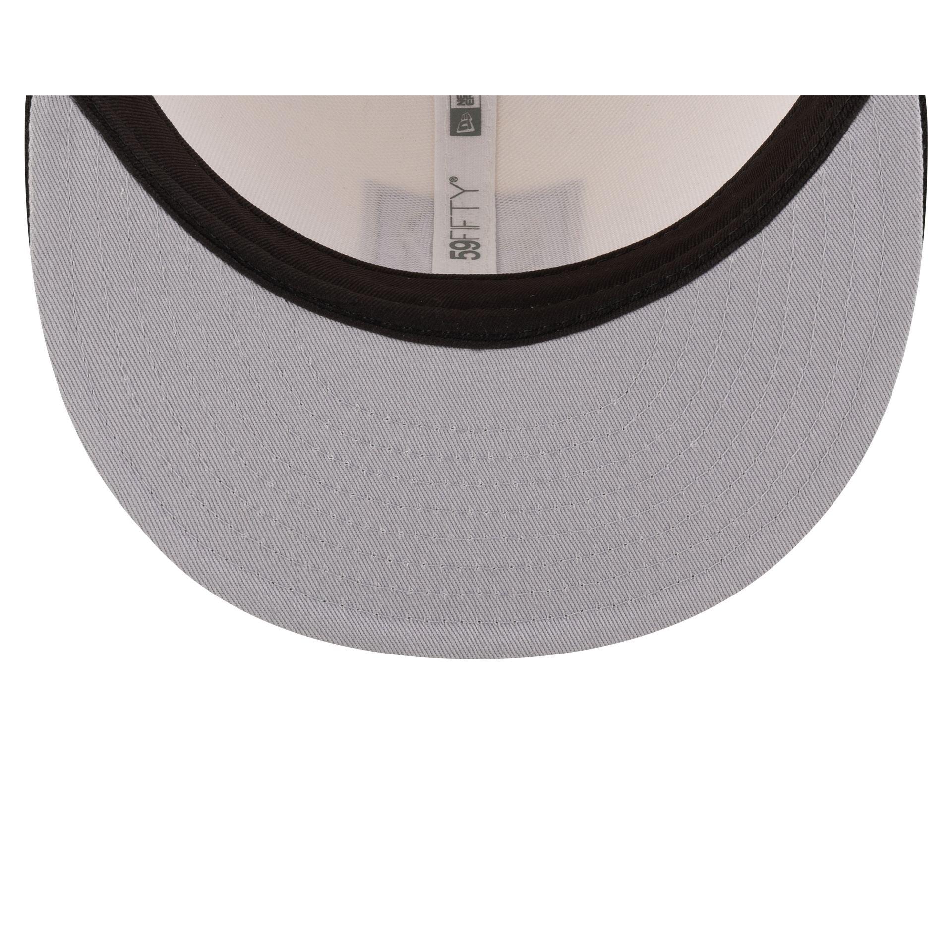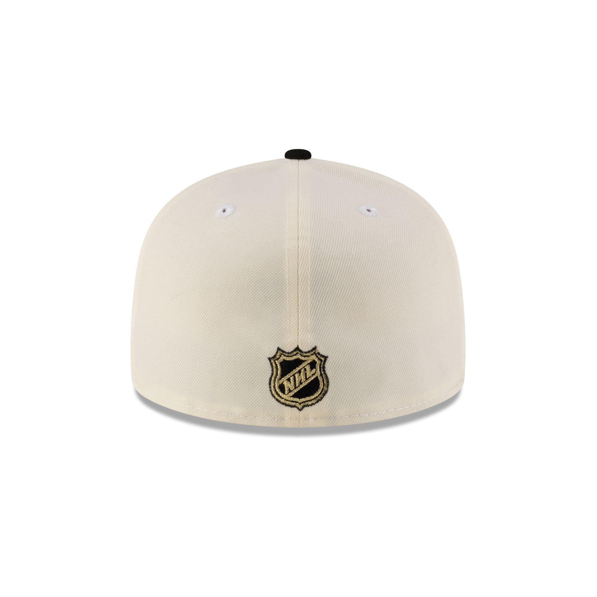 The Just Caps Stanley Cup Champions Vegas Golden Knights 59FIFTY Fitted Cap features an embroidered Golden Knights logo at the front panels with a matching NHL Shield logo at the rear. Additional details include a 2023 Stanley Cup Champions patch at the right-wear side and a gray undervisor.