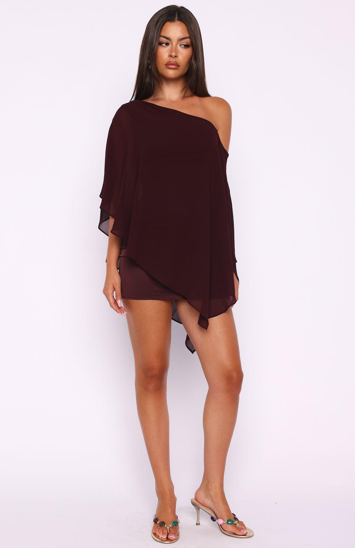 The Just For Tonight One Shoulder Mini Dress Burgundy is your answer to an effortless night out style. Designed with an invisible zipper and clasp closure, a soft, floaty silhouette and a flattering asymmetrical neckline, it drapes over the body while still feeling light and easy to wear. The sheer overlay, flowy fabric adds a touch of drama, making it perfect for dinners, cocktails, or last minute plans that turn into all night moments.