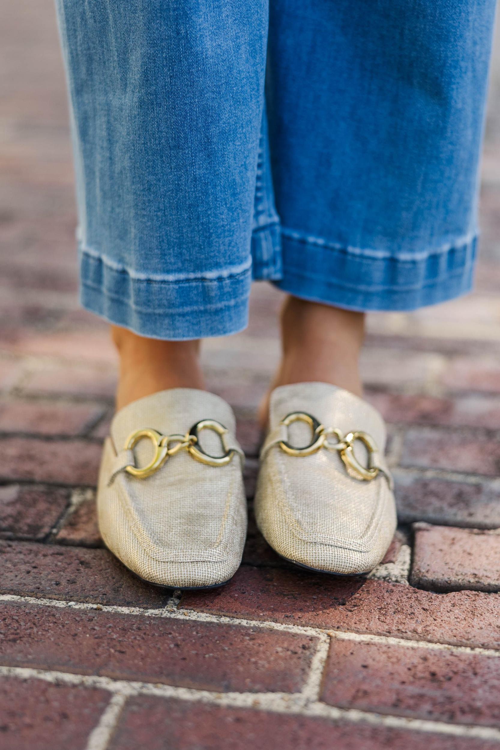 Slip into instant polish with these gold-accented flats! The sleek mule design paired with a chic woven texture gives them a timeless, upscale vibe, while the shiny gold horsebit detail adds just the right amount of glam. Perfect for workdays, weekend strolls, or elevating your casual denim—these are the kind of shoes you’ll reach for again and again.