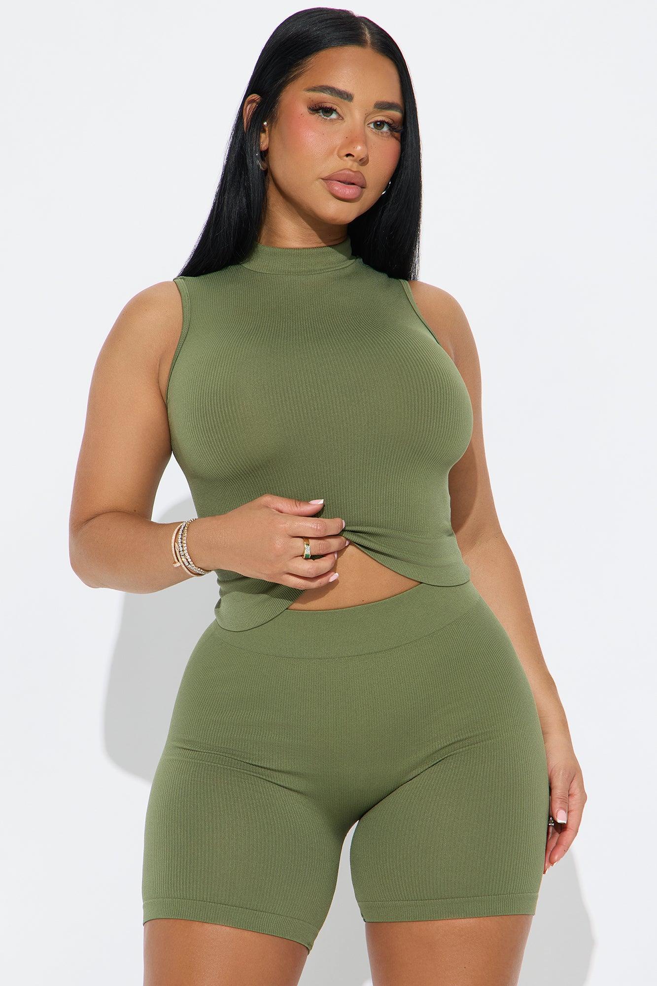 Just Landed Seamless Tank Top Biker Shorts Set - Olive