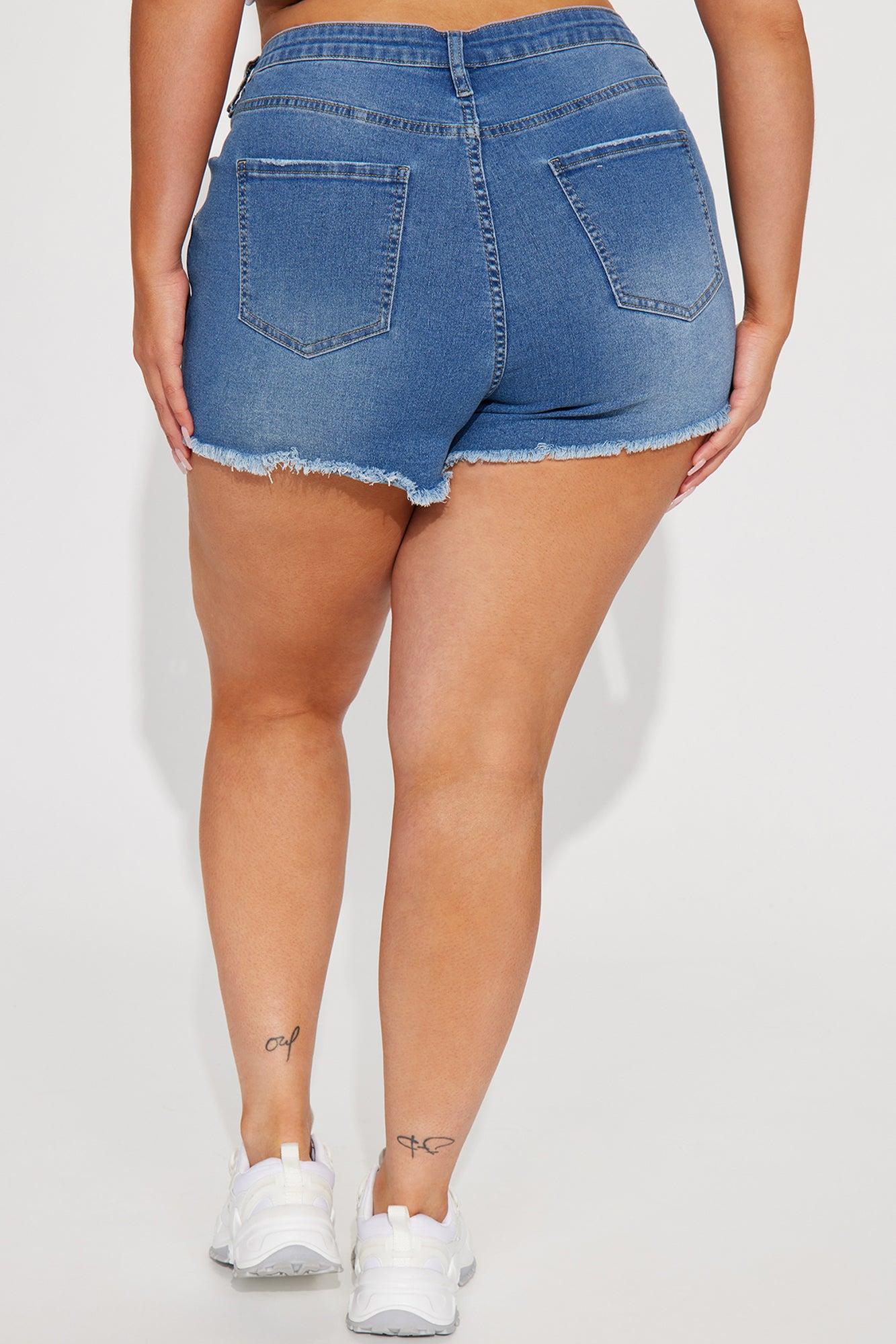 Available In Medium Wash. Denim Short Medium Stretch Ripped 5 Pocket Fray Hem 2.5" Inseam 10.5" Rise Disclaimer: Due To The Specialized Wash & Distressing Process, Each Garment Is Unique 54% Cotton 26% Polyester 18% Rayon 2% Spandex Imported California Proposition 65WARNING: Cancer and Reproductive Harm - www.P65Warnings.ca.gov.