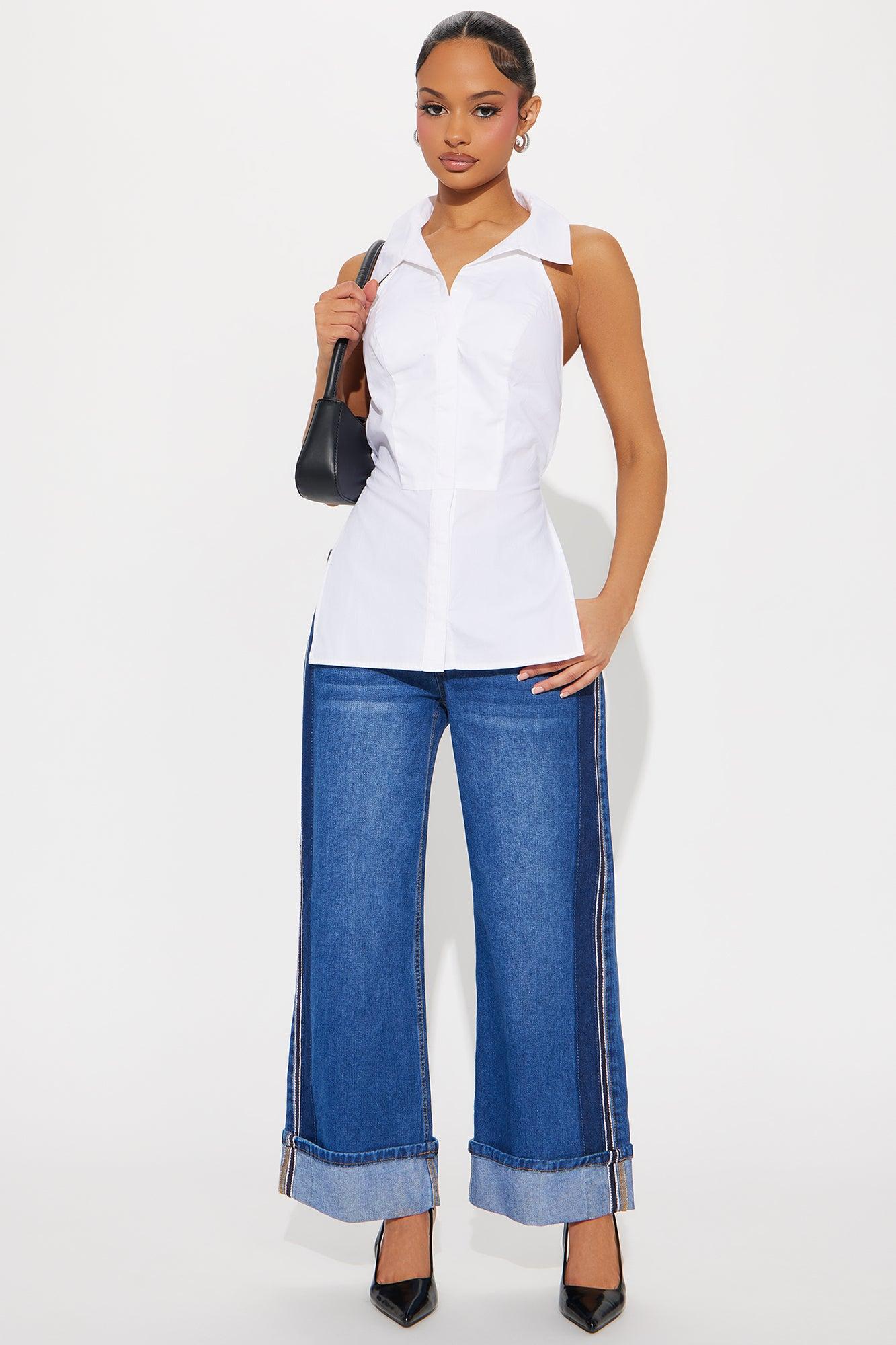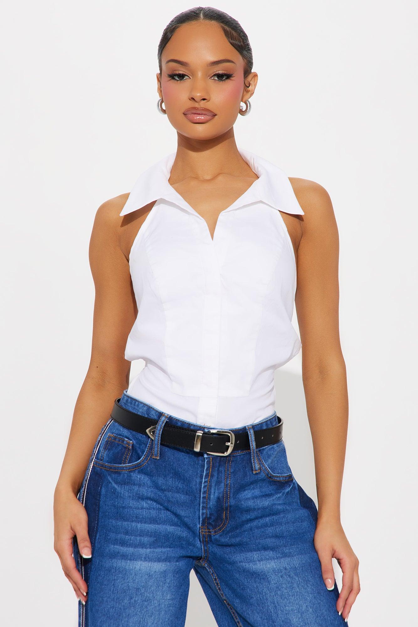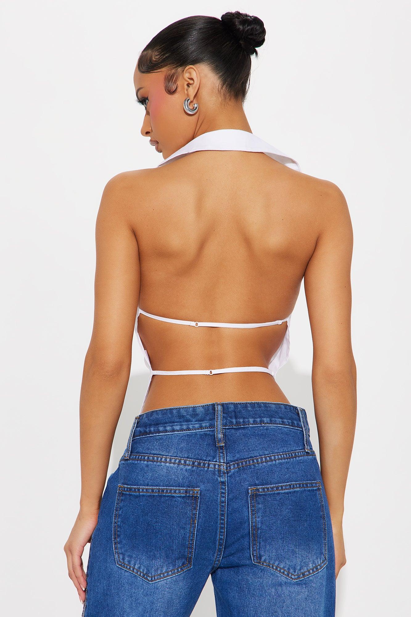 Just The Right Poplin Halter Top - White