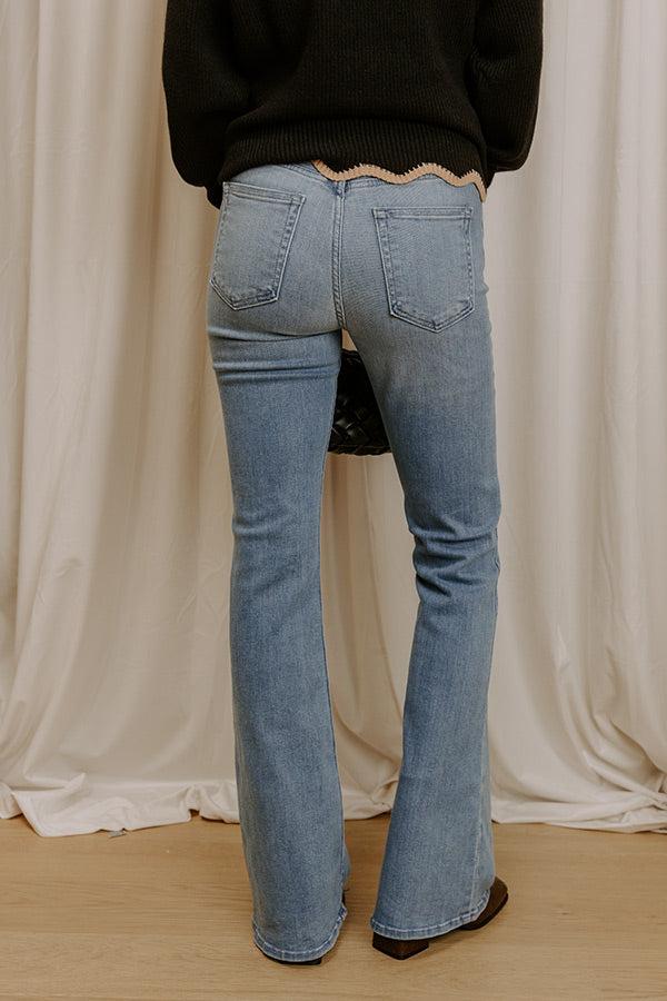 - Step into effortlessly chic style with these skinny flare jeans! Their flattering fit hugs your curves while the subtle flare adds a trendy twist, making them a must-have for casual and polished looks alike. - Unlined stretchy denim material with subtle fading - Belt loops - A hidden zip fly and button closure - Functional front and back pockets - A skinny flare silhouette that ends in straight hemlines