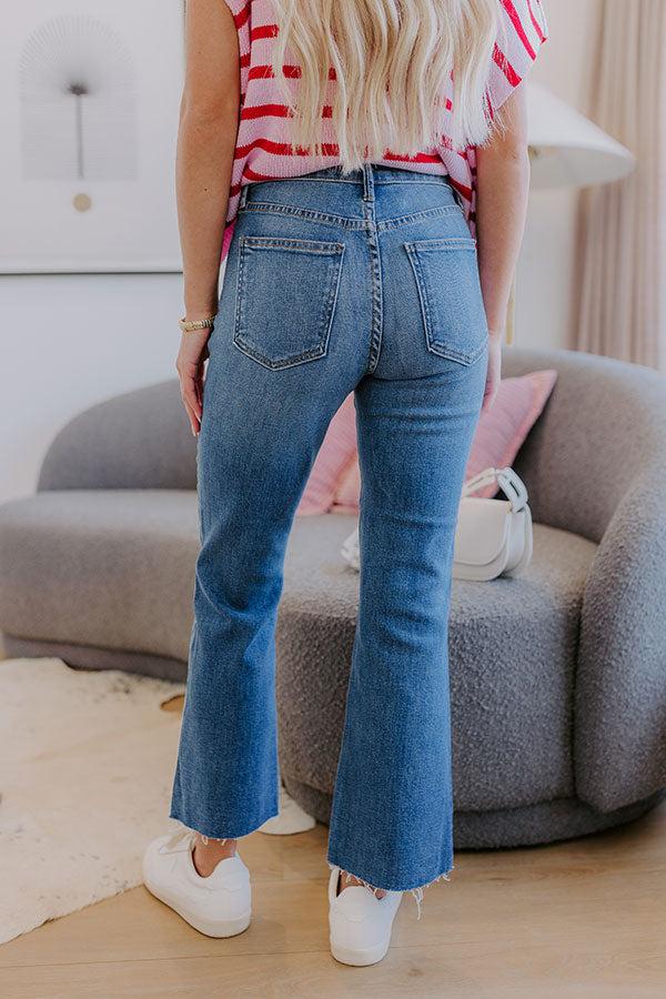 - Trendy denim days are just around the corner with these super cute jeans! With their playful patch pockets and cropped flare design, they're the perfect addition to your everyday wardrobe! - Semi-stretchy denim with subtle fading - Belt loops - A hidden zip fly and button closure - Functional front and back pockets - A flattering silhouette that ends in unfinished, subtly flared, cropped hemlines