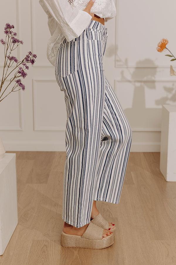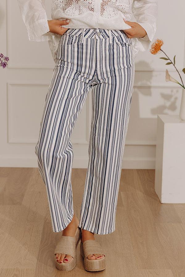 Fresh, fun, and effortlessly cool, this blue and white striped jean adds an instant pop of personality to everyday denim. The straight leg silhouette and high-rise waist create an easy, flattering look that feels timeless while still keeping it on-trend.