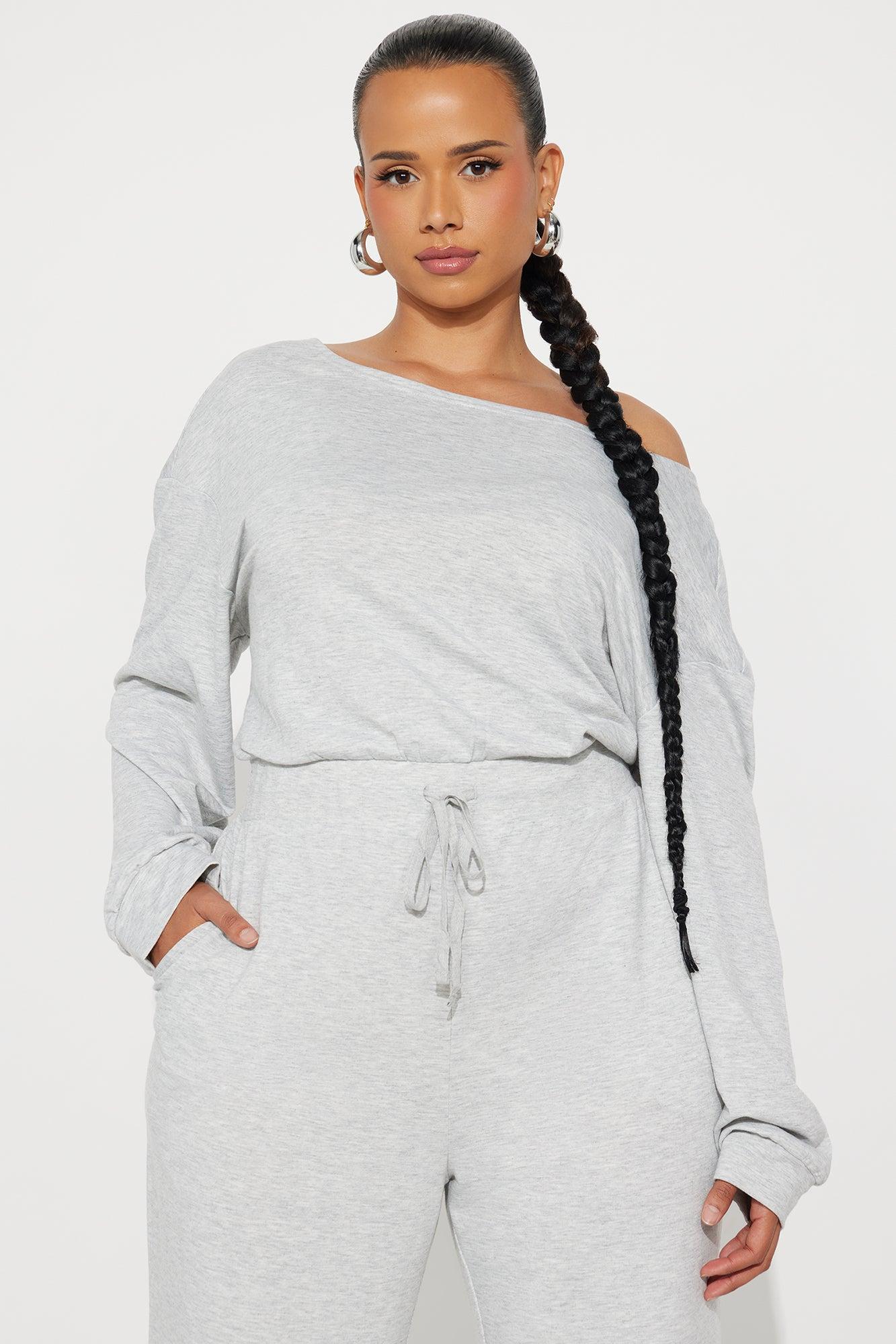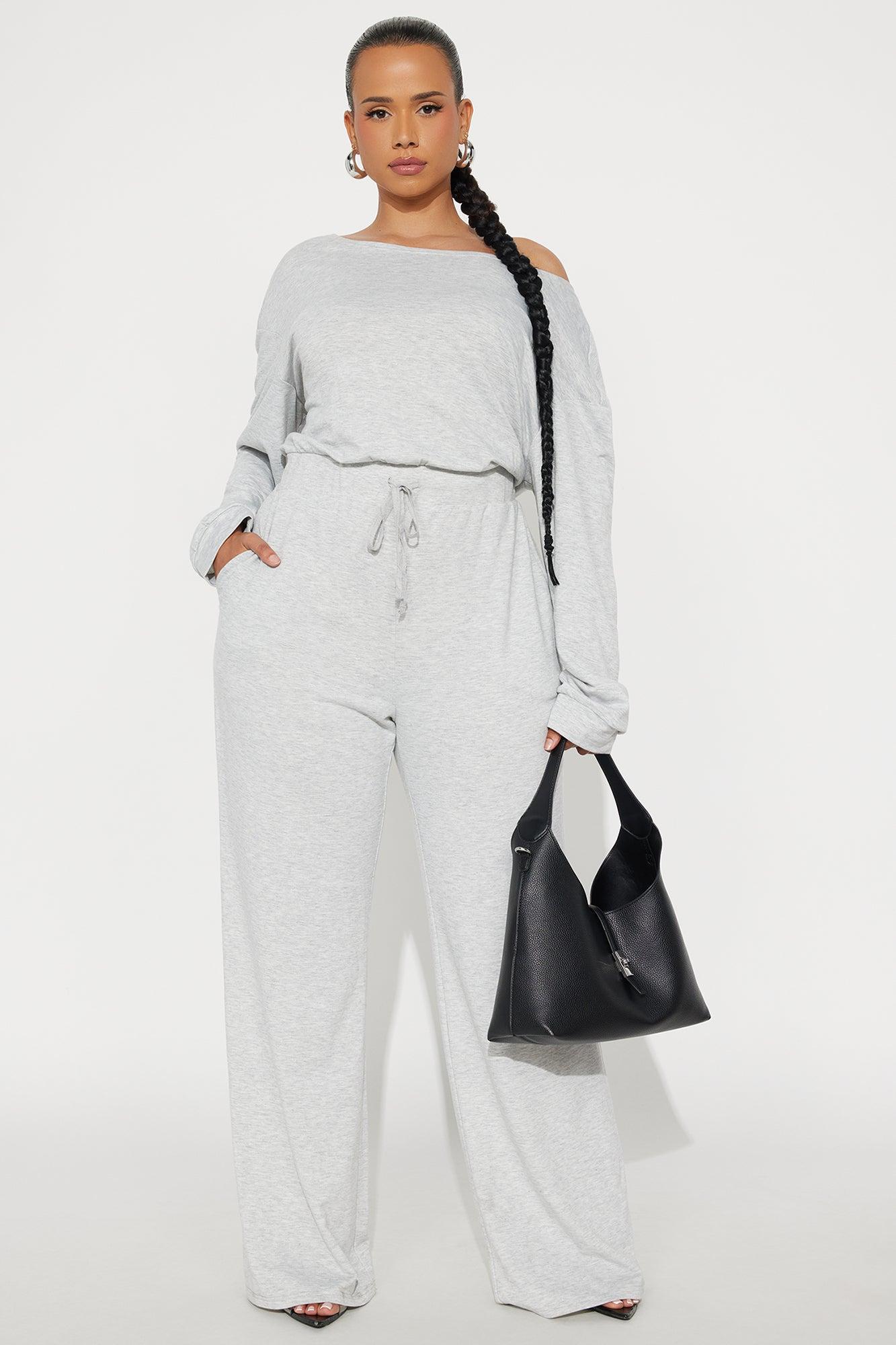 Just Warming Up French Terry Jumpsuit - Heather Grey