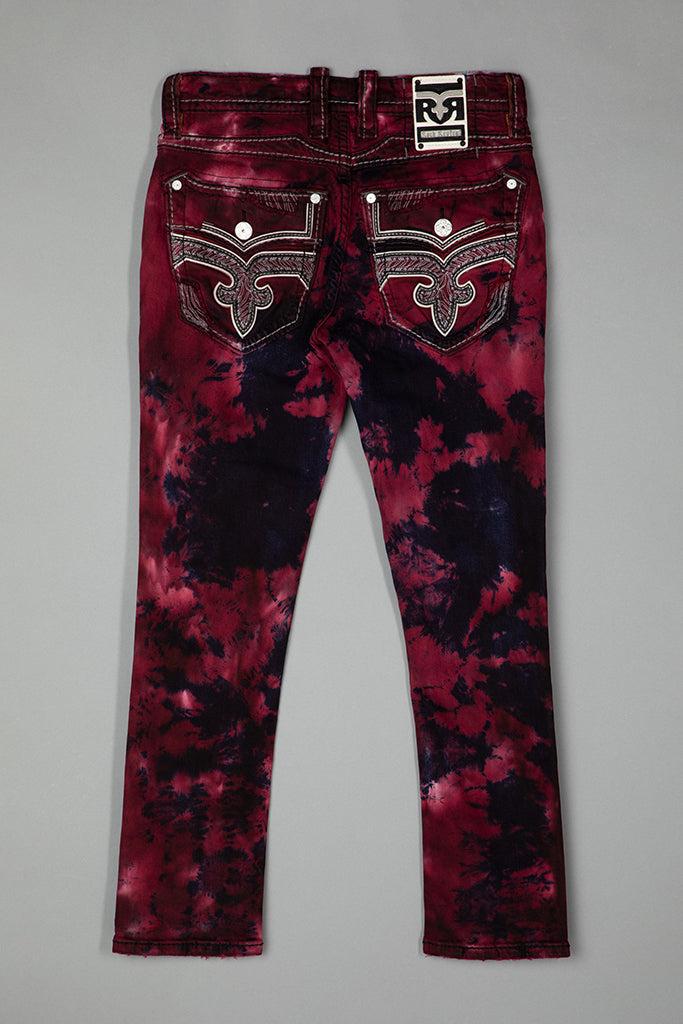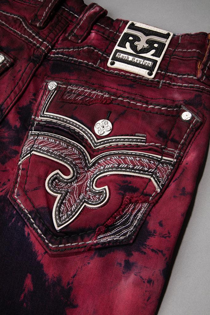 Silver white brushed hardware throughout. Classic inverted Fleur de Lis back pockets with grey metallic stitching. Black and white leather accents with faux snake leather print belt loop patch. Designed with care and creativity in Los Angeles, California.