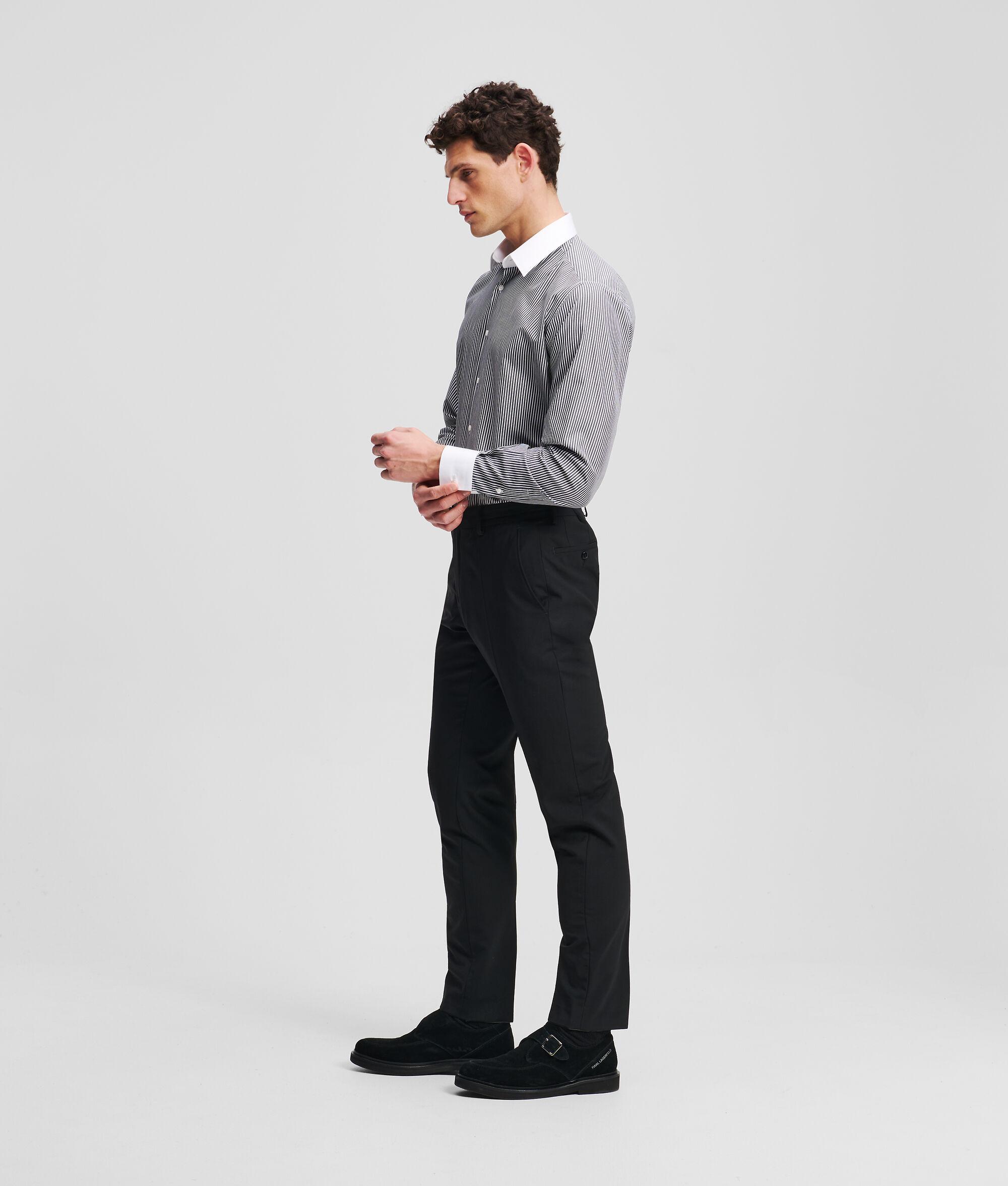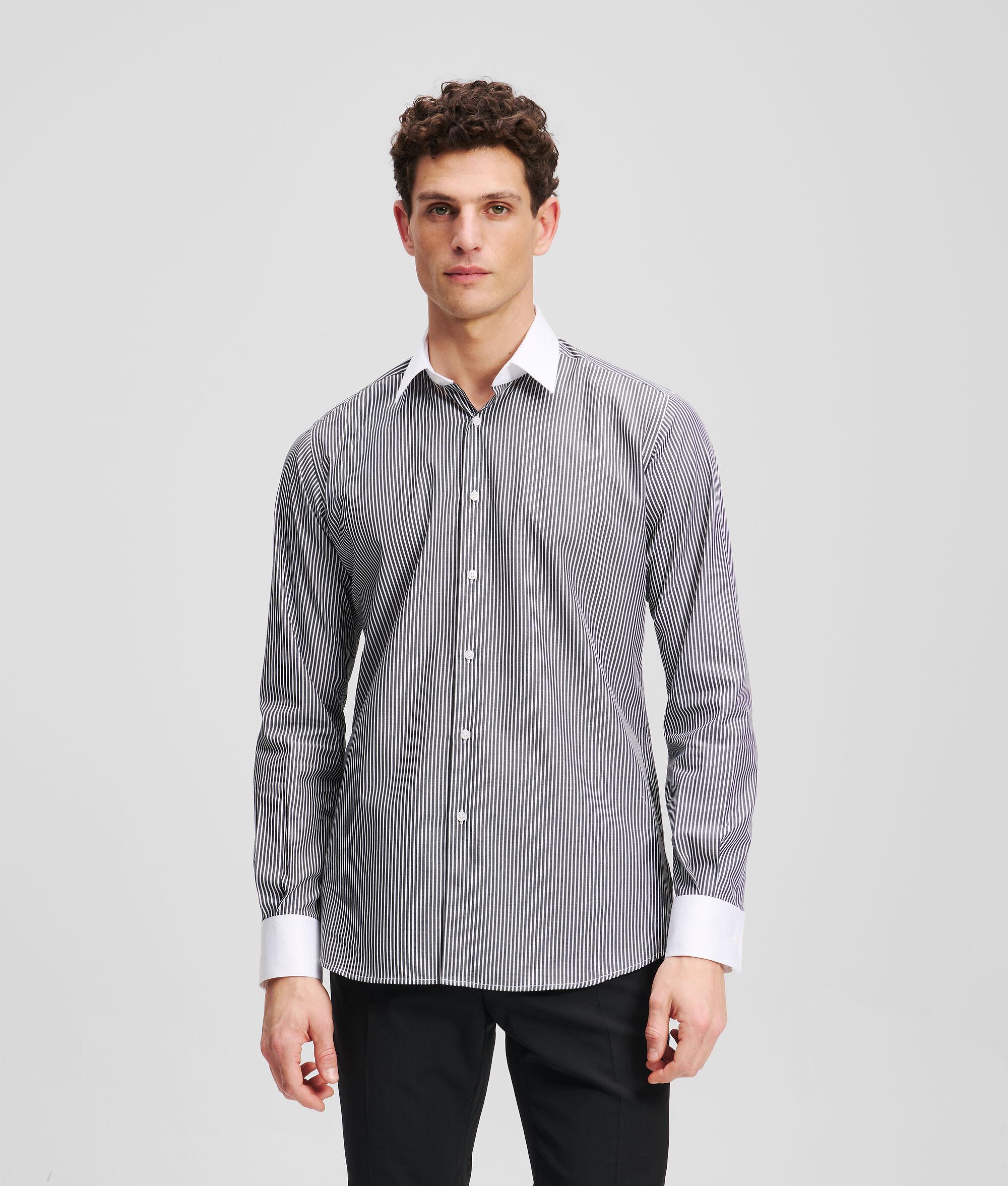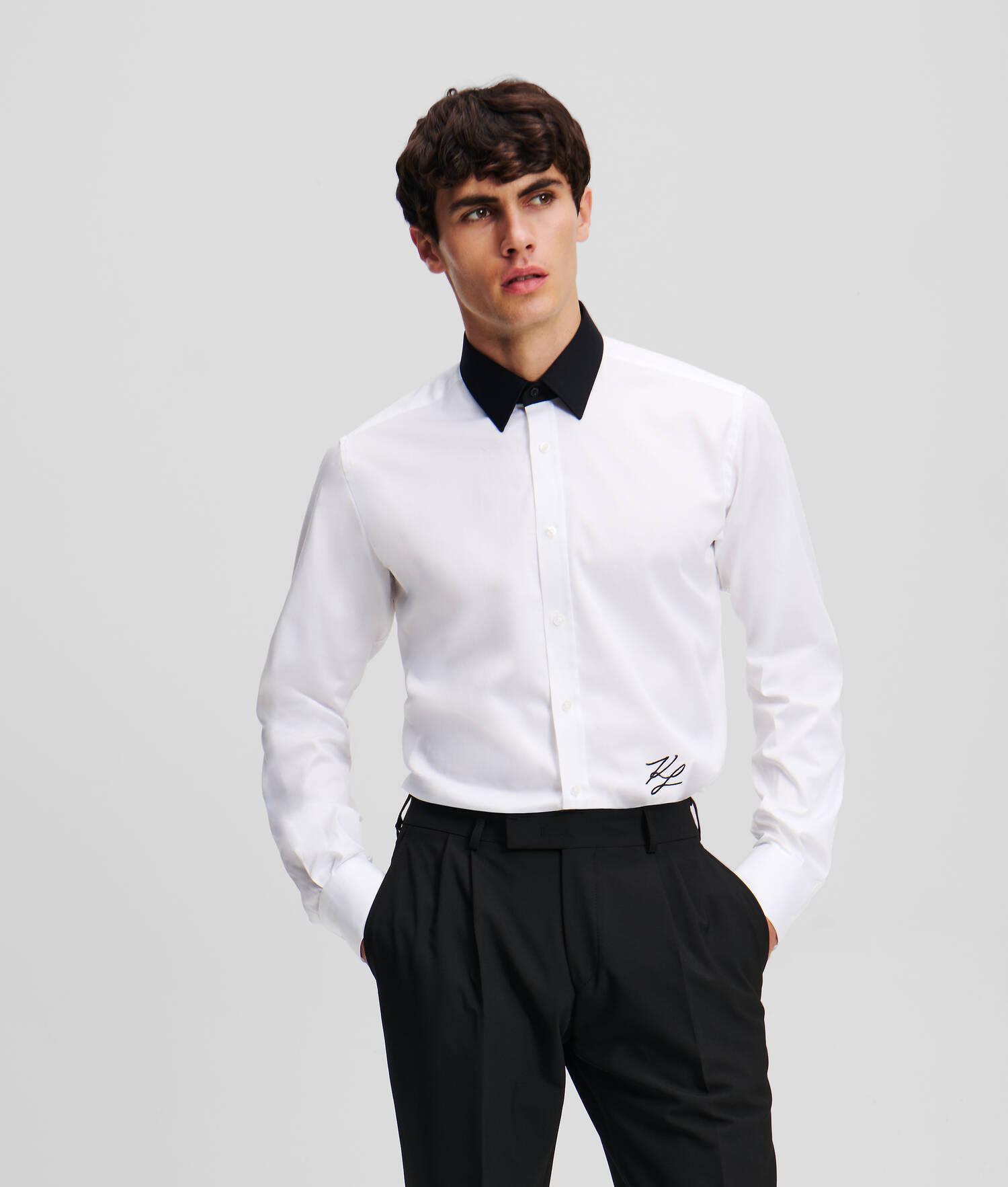 Discover a modern fit silhouette in this button-up shirt that redefines casual elegance. A striking, contrasting pointed collar pairs beautifully with signature KARL Autograph embroidery to add a unique touch to this timeless wardrobe piece.
