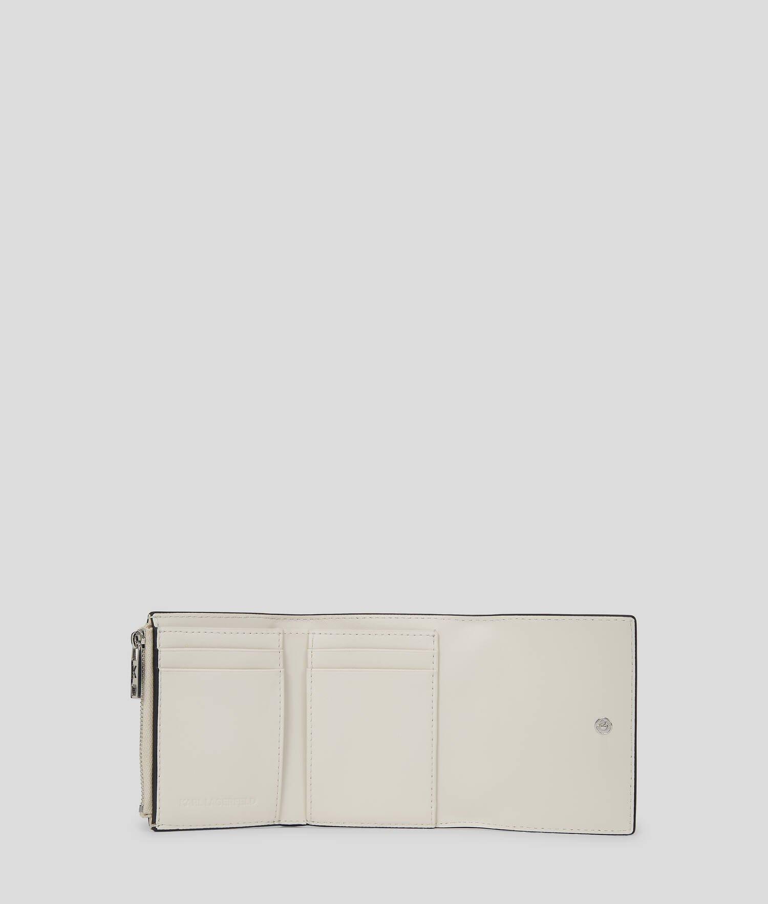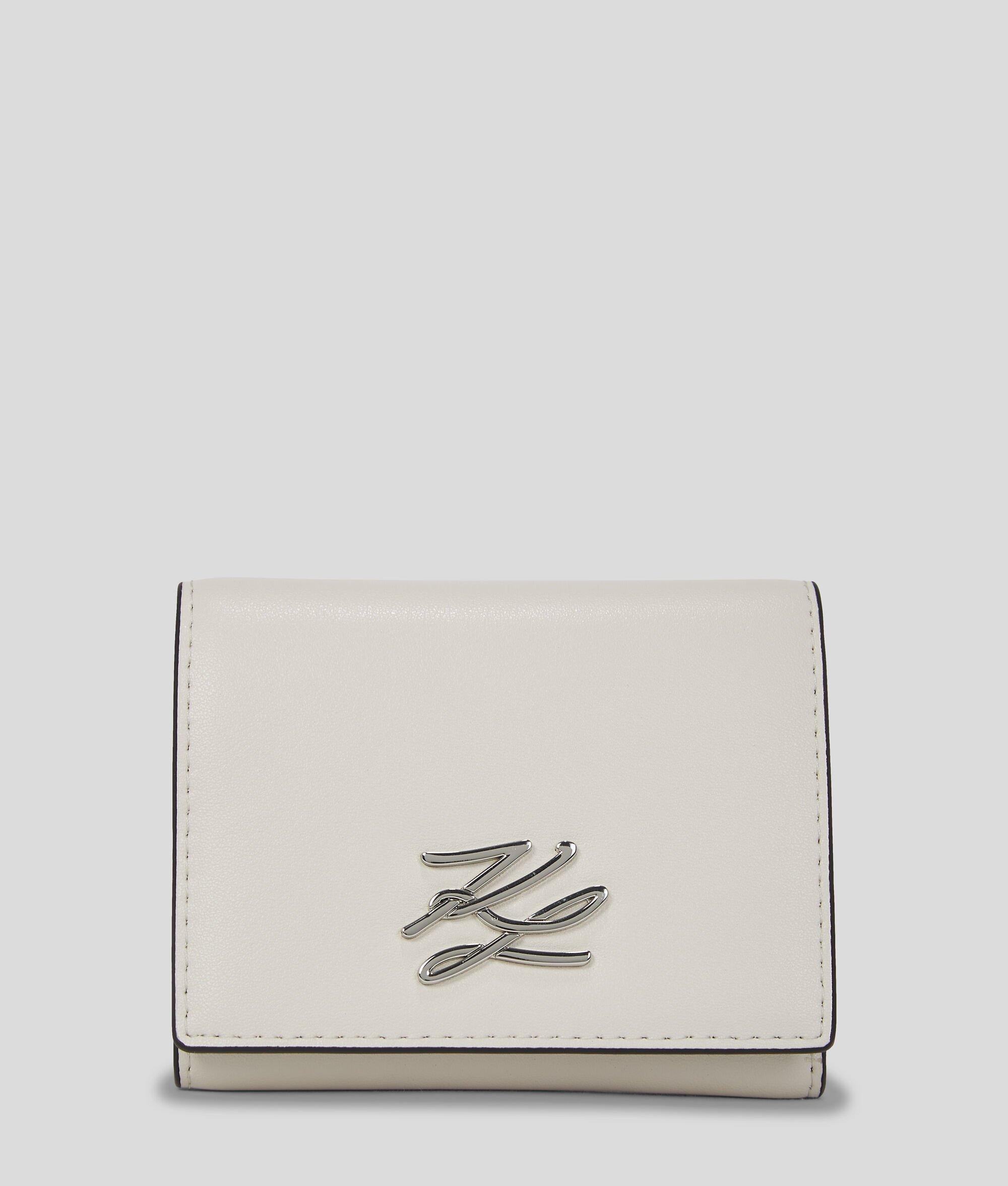 Crafted in a sleek trifold silhouette, this wallet combines functionality with style. Multiple inner card slots and compartments ensure seamless organization, while the KARL Autograph hardware adds a distinctive touch.