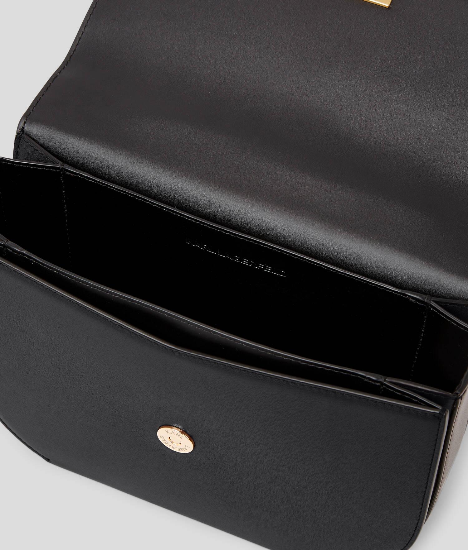 A seamless blend of elegance and structure, this KARL LAGERFELD crossbody bag exudes sophistication with its architecturally-inspired silhouette. Fine-grain leather gives a luxurious feel, while meticulously organized compartments ensure essentials stay in place. An understated metal plaque adds a refined touch.