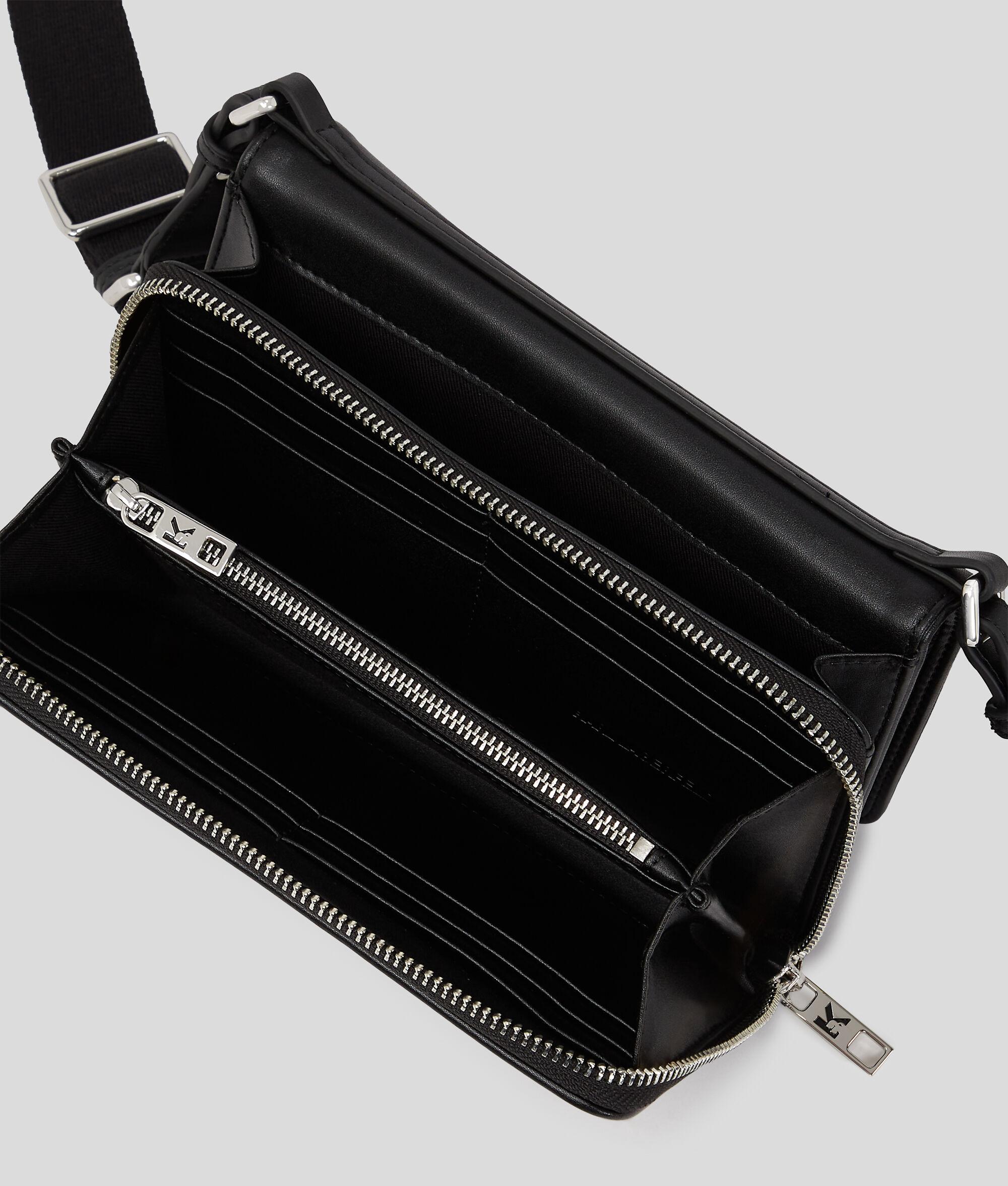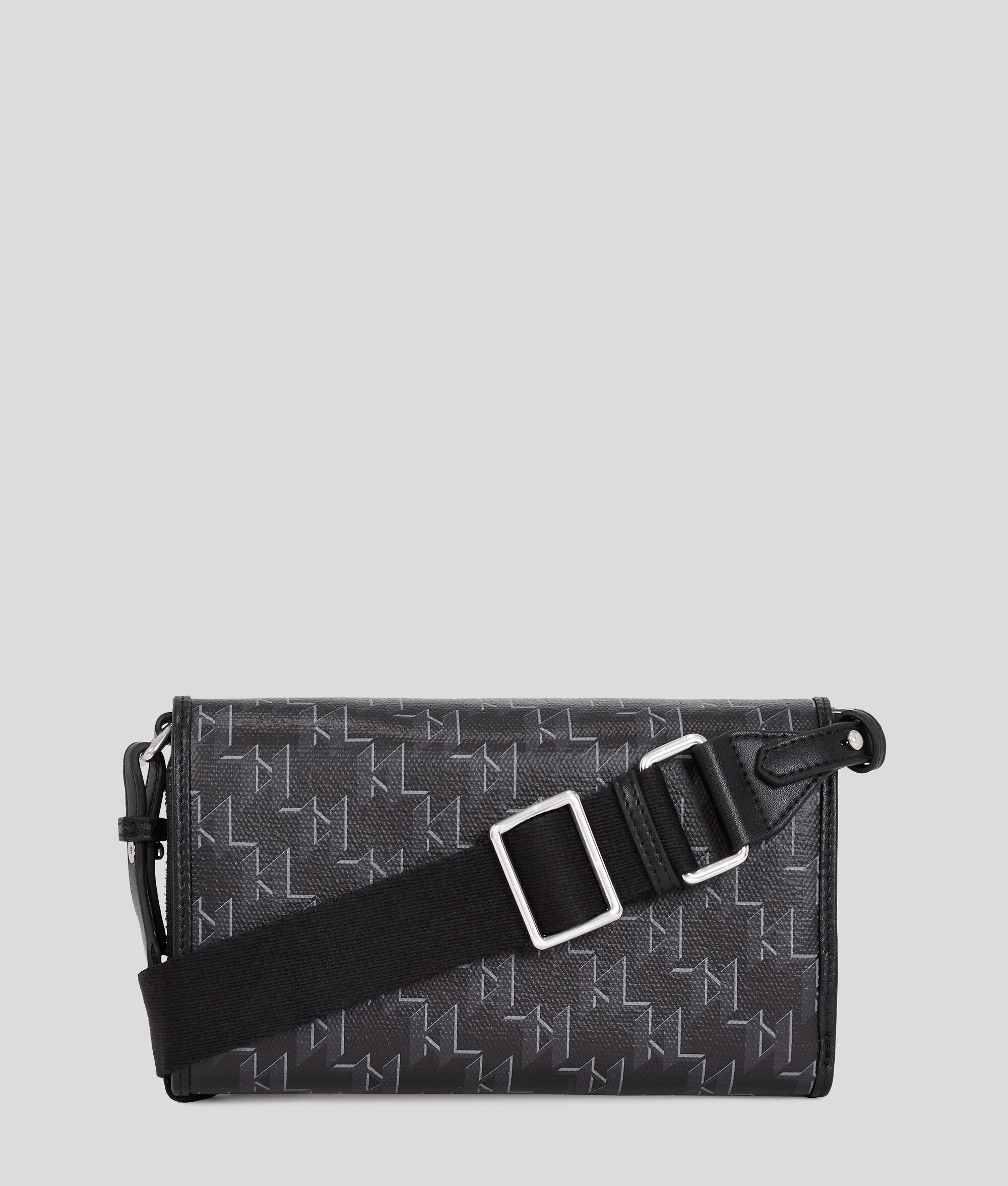 A contemporary companion for those on-the-go days, this crossbody wallet features a secure flap closure with an internal zip, ensuring your essentials stay safe. With multiple card slots and an adjustable strap, complemented by an iconic Karl Monogram design, it combines practicality with style.