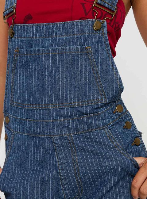 Kacey Short Overalls Mid Blue Pinstripe