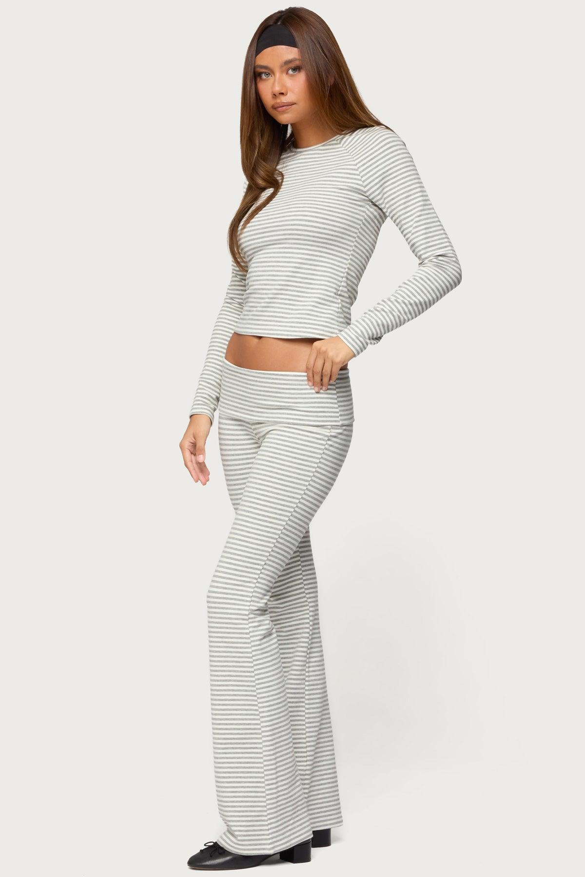 Loungewear t shirt Long sleeves Raglan design Striped pattern Matching set Cotton, Polyester, Spandex Model wears size S Model height is 5'9 Item care: Machine wash at maximum 30ºC, do not bleach, do not tumble dry, iron at a maximum of 110ºC, do not dry clean