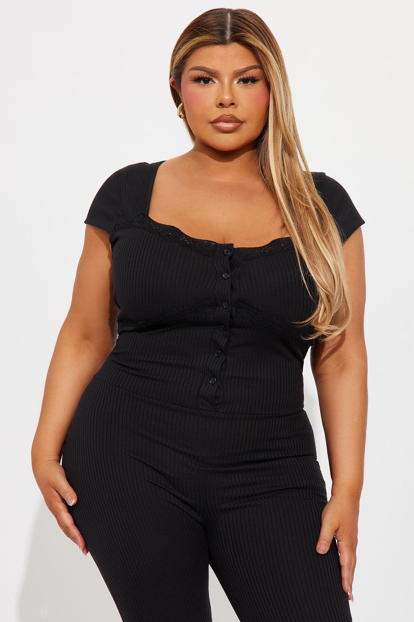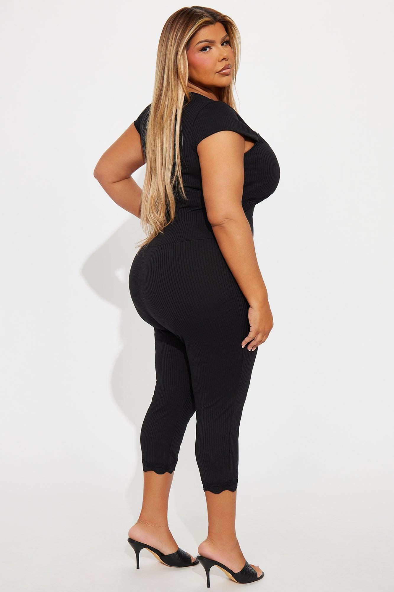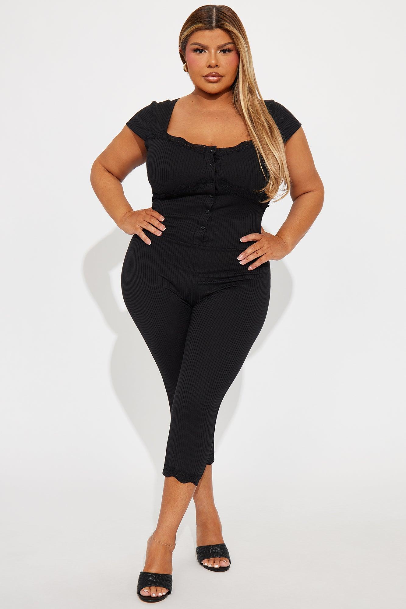 Kaelyn Ribbed Short Sleeve Jumpsuit - Black