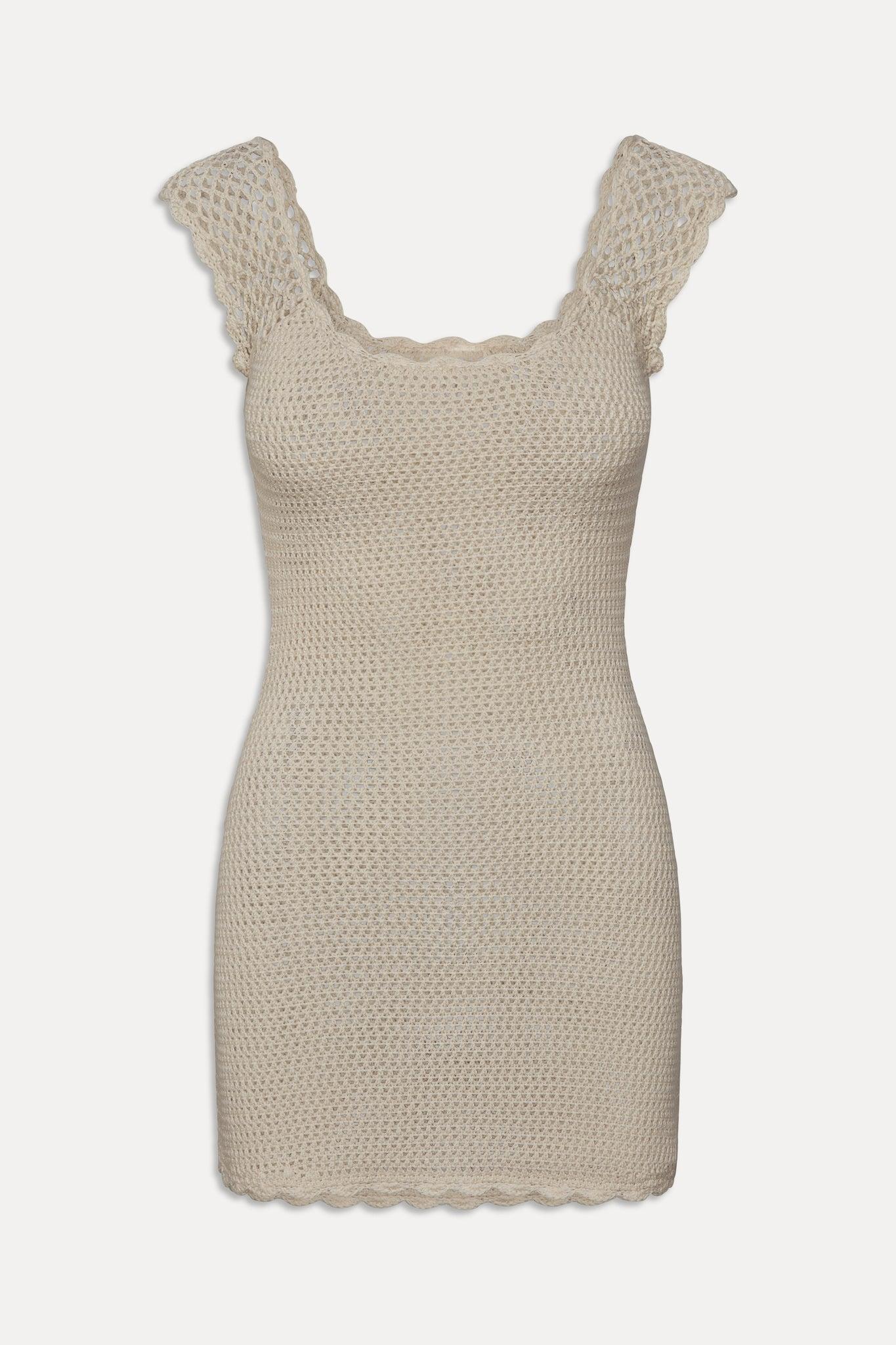 The Kai mini dress is your go-to cover up for hot summer beach days. Easy to throw on over swimwear or style with sandals for a sunday stroll. Details Crochet mini dress Scoop front and back neckline Fishnet sleeves Soft washed-in feel Scallop trim details
