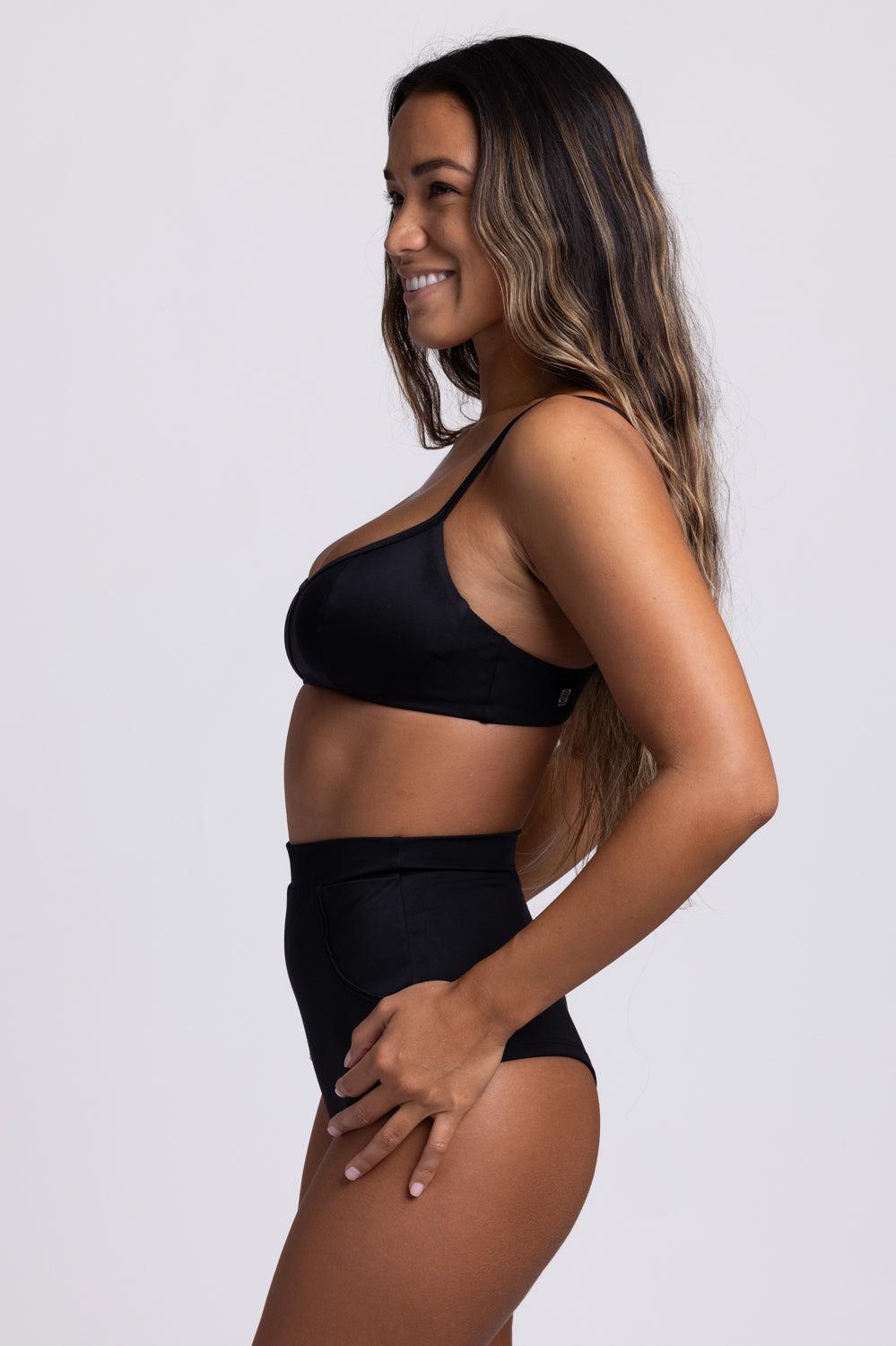 The Kaia bottoms redefine the surf experience with their full coverage in the front, providing a secure and comfortable feel as you navigate the waves. The cheeky back adds a playful touch, allowing you to showcase your bold beach style. The faux pockets with piping detail elevate the design, creating a stylish look that stands out on the shoreline. “These faux pocket shorts are inspired by the Malibu Gidget era and perfect for the effortless cool California surfer girl look. They have the perfect cheeky coverage in the back and pair great with the Makenna top" Good for: Surfing, paddling, ocean activities, lifestyle JOLYN x Eryn Krouse High Waisted Drawstringless Medium/Full Coverage (4) Medium Impact (3) Hem at leg opening Faux pockets on side Lined for maximum privacy Tagless for maximum comfort Chlorine Resistant True to size Fabric Composition: Recycled SurfTec fabric UPF 50+ 74% Recycled Nylon / 26% Elastane Care Instructions: Hand wash cold Hang dry Do not iron, dry clean or bleach