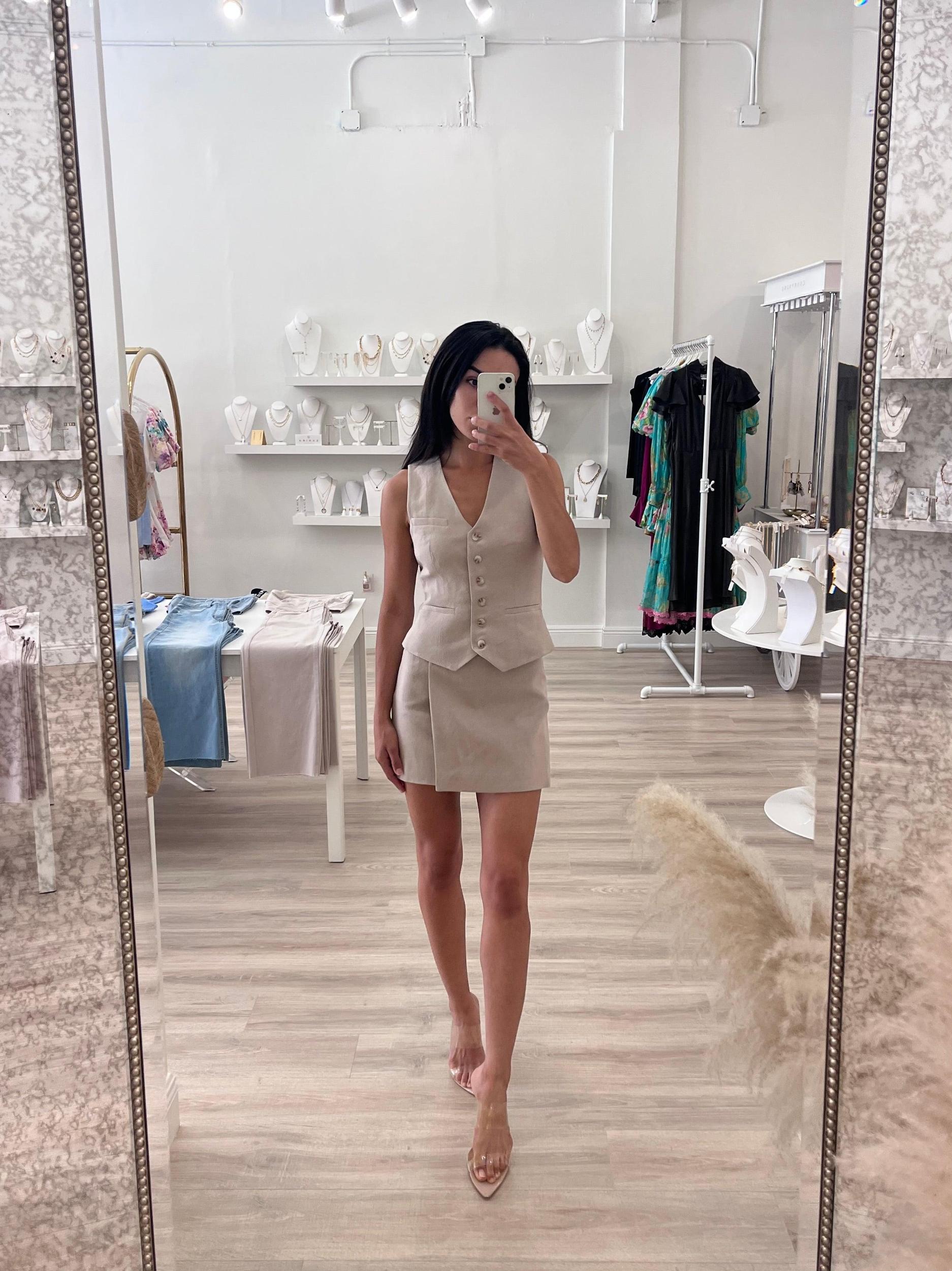 Get ready for some cute and fancy fun with the kaiko Linen Mini Skirt! Made of soft linen, this faux-wrap skirt boasts a concealed back zipper closure for a sleek look. Perfect for a brunch with friends, this skirt adds a playful touch to any outfit.