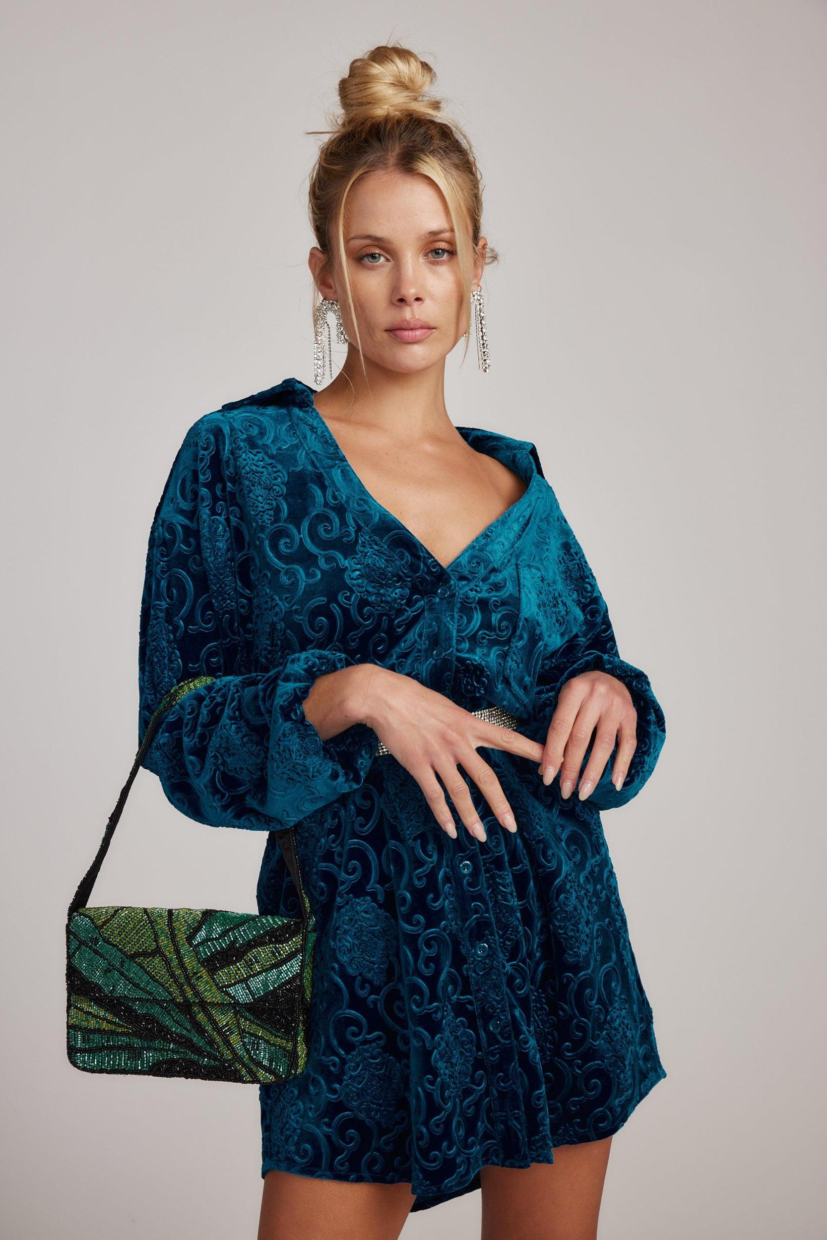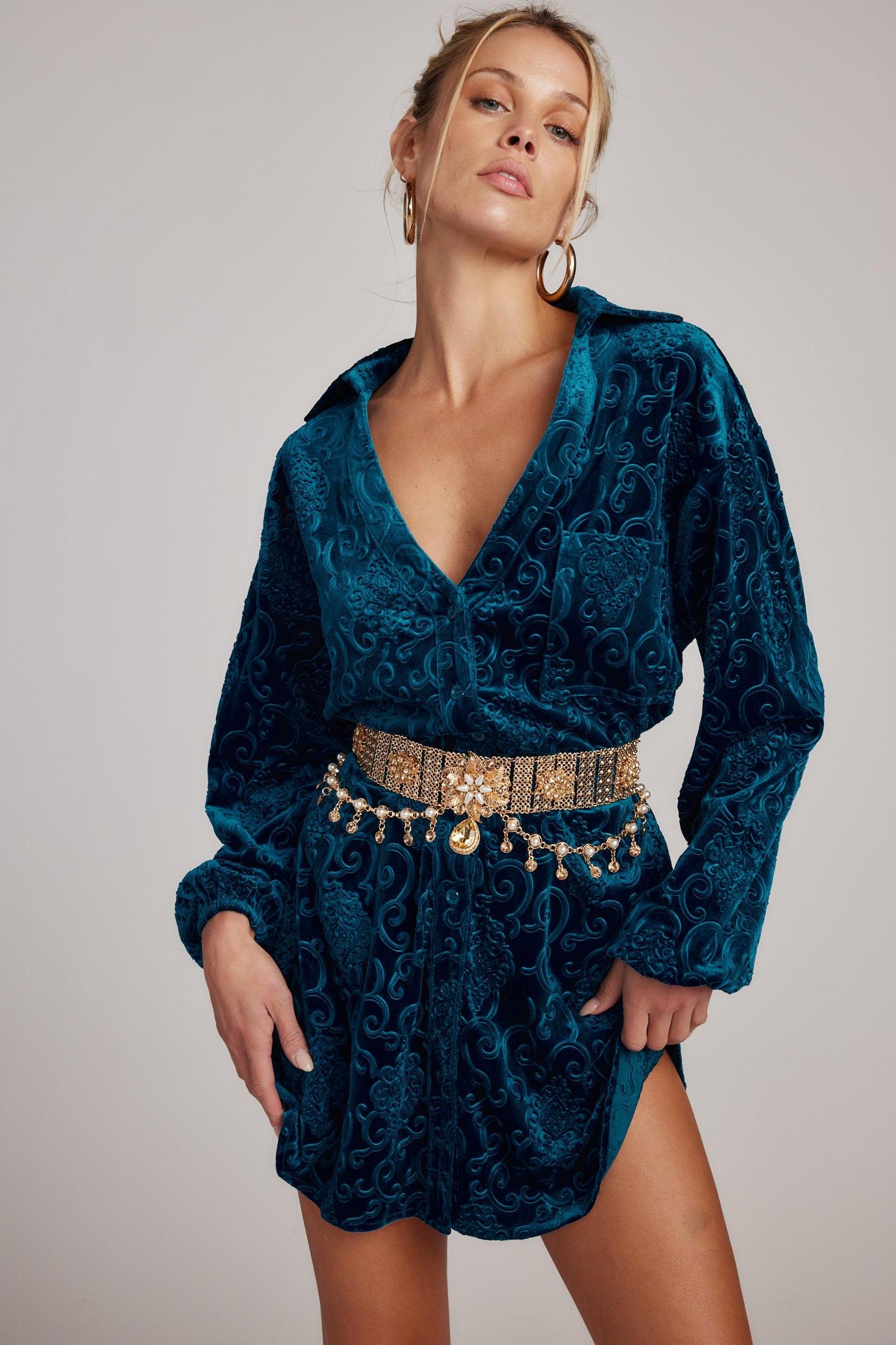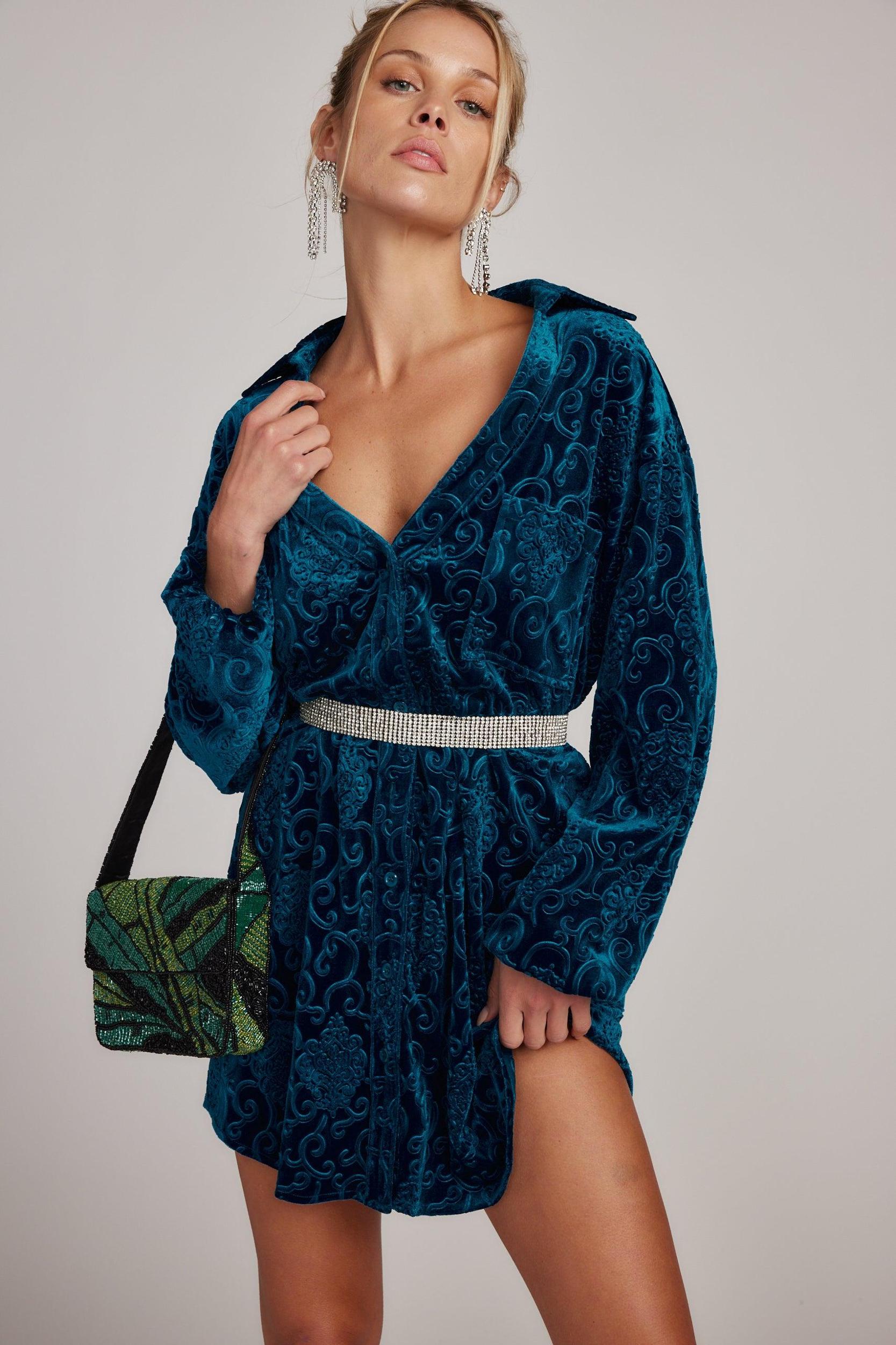 Reasons to love the Kali Blue Long Sleeve Velvet Dress: it’s captivating blue velvet material. This mini dress features button detailing down the front, a functional front left chest pocket, and a deep V-neckline. Throw on a waist belt and some heels and you’re ready to go! STYLE RECOMMENDATIONS: - style with a nude strappy heels and the Yoko Gold Shoulder Bag for the perfect look PRODUCT DESCRIPTION AND MATERIALS:- blue velvet long sleeve mini dress - belt not included - front button closure - functional front left pocket - 95% polyester, 5% spandex - hand wash cold - do not bleach - do not iron - hang/lay flat to dry - do not dry clean SIZE RECOMMENDATIONS: - runs true to size - measured on a size small Extra Small: 0-2 - length: 32” Small: 2-4 - length: 32.5” Medium: 6-8 - length: 33" Large: 8-10 - length: 33.5” Extra Large: 10-12 - length: 34” MODEL DETAILS: - Daniella is 5'8 - Bust: 32 B - Waist: 26" - Wearing size Extra Small RETURN POLICY: We offer refunds & exchanges within 15 days of delivery with tags attached & in original, unworn conditions (restrictions apply). We reserve the right to refuse returns & not honor refunds on items that have been worn, stained/soiled, laundered or altered in any way. This includes such marks as bodily fluids, deodorant stains & removed/tampered with liners. For sanitary reasons, we ask that you try on items over underwear. All sale items are final sale. Final sale items are non-returnable and non-exchange. Final sale items include: jewelry, accessories, sale marked items, sale swim, and vintage garments.