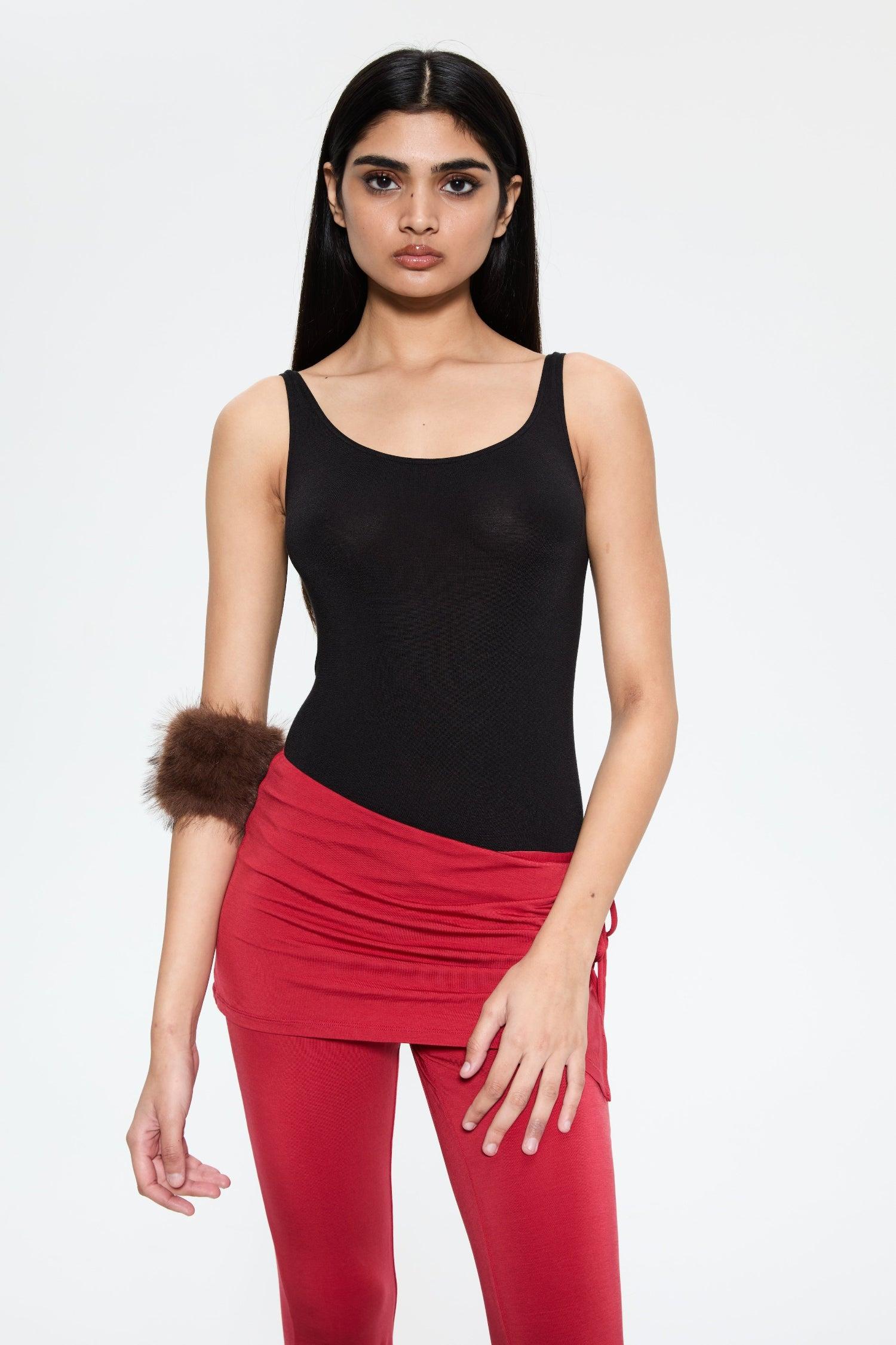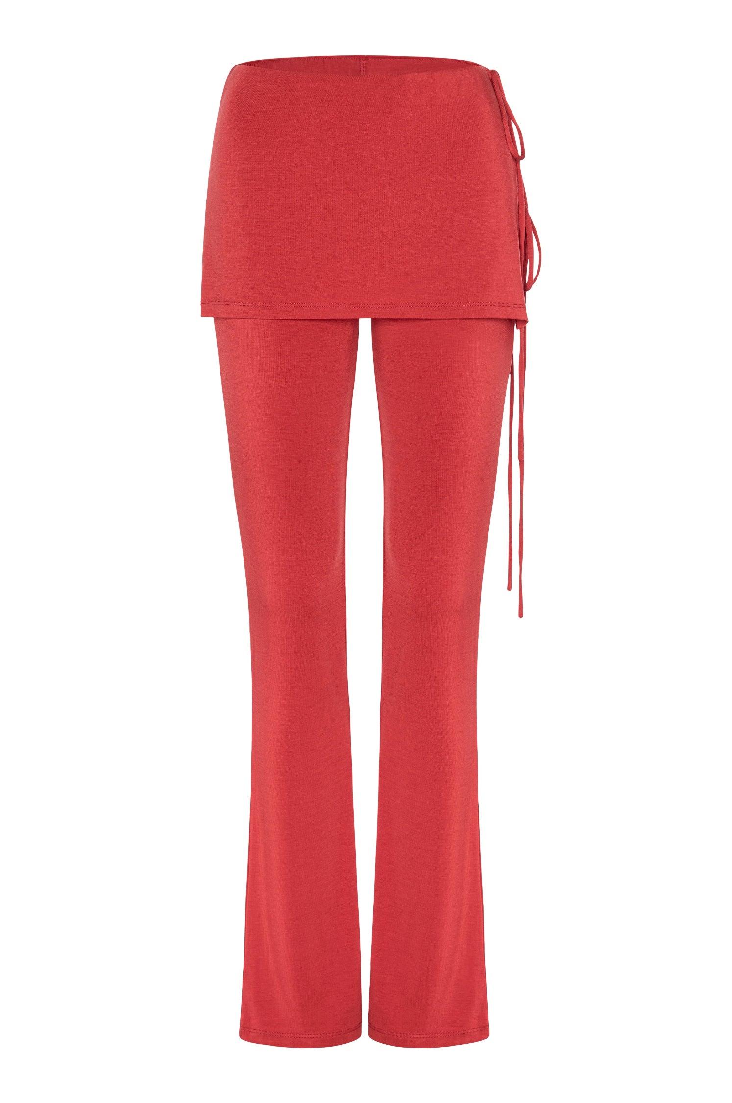 Meet our super soft Kali Pant in Burgundy. She's the comfiest pant with a layered skirt that ties on the side. In our favorite cotton jersey fabric. 93% Tencel, 7% Spandex.