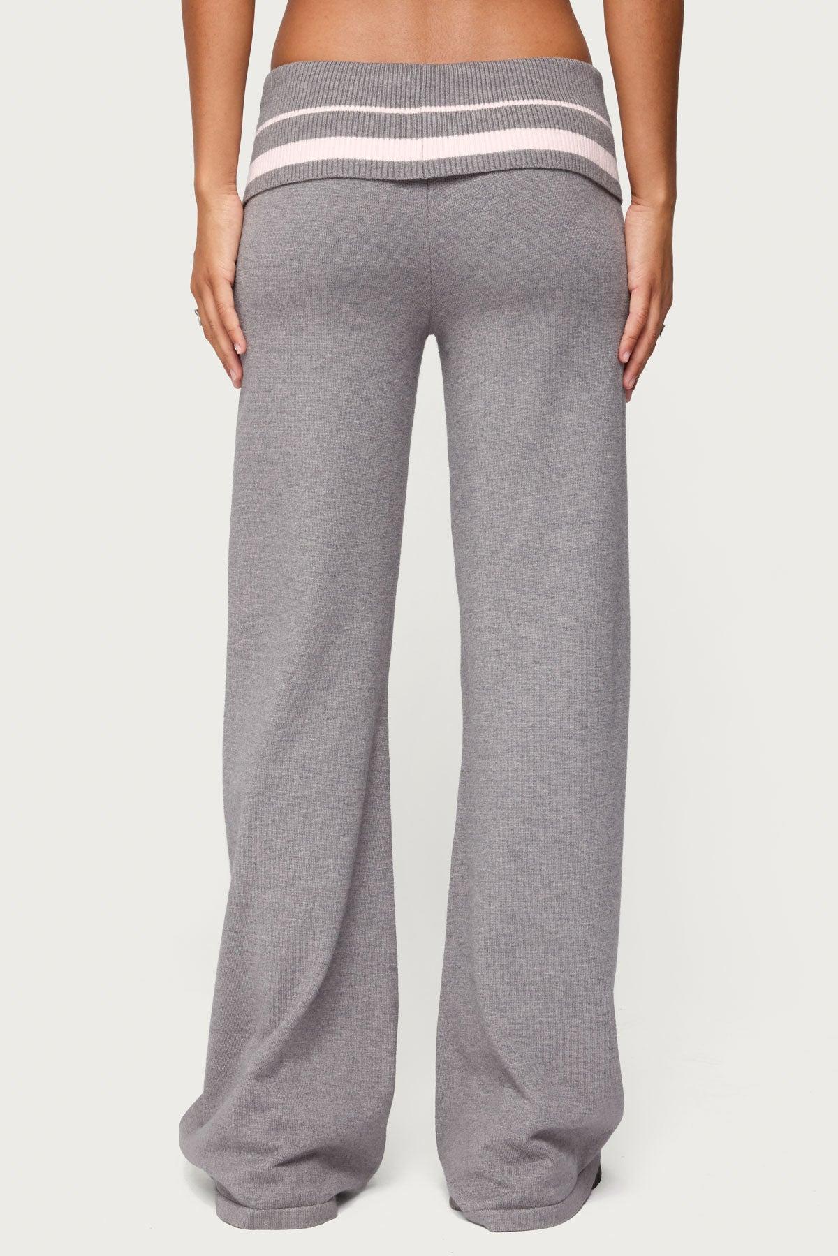 Pants Flared fit Striped fold over waistband Ribbed detailing Knit fabric Matching set Rayon, Nylon, Polyester Model wears size S Inseam of size S (in): 32.7 Model height is 5'8 Item care: Machine wash at maximum 30ºC, wash with similar colors, do not bleach, do not tumble dry, iron at a maximum of 110ºC, do not dry clean