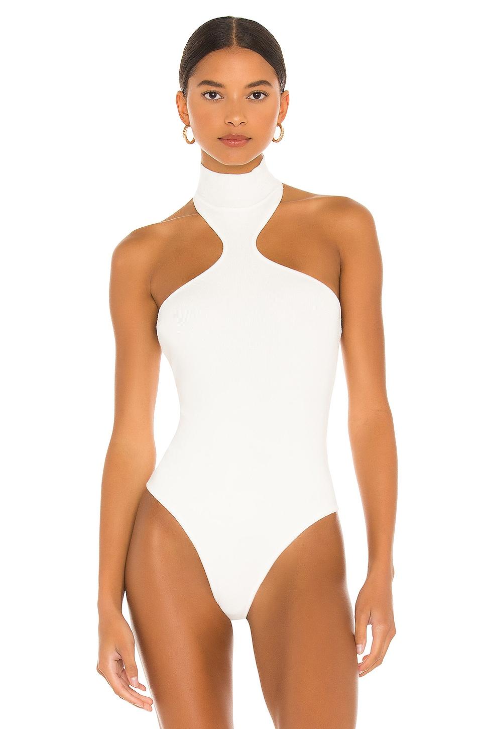 superdown Kallie Halter Bodysuit in White. Size XS, S, L. 83% viscose 15% nylon 2% spandex. Made in China. Hand wash. Gusset snap button closure with thong back. Cut-away halterneck design. Ribbed jersey fabric. SPDW-WS1404. SDS2262 F21. superdown is a contemporary label offering on-demand, on-trend, on-social apparel. Always on the pulse of the latest styles, superdown is the go-to for aspiring, trendy, fashion-loving babes who are #superdown for anything.