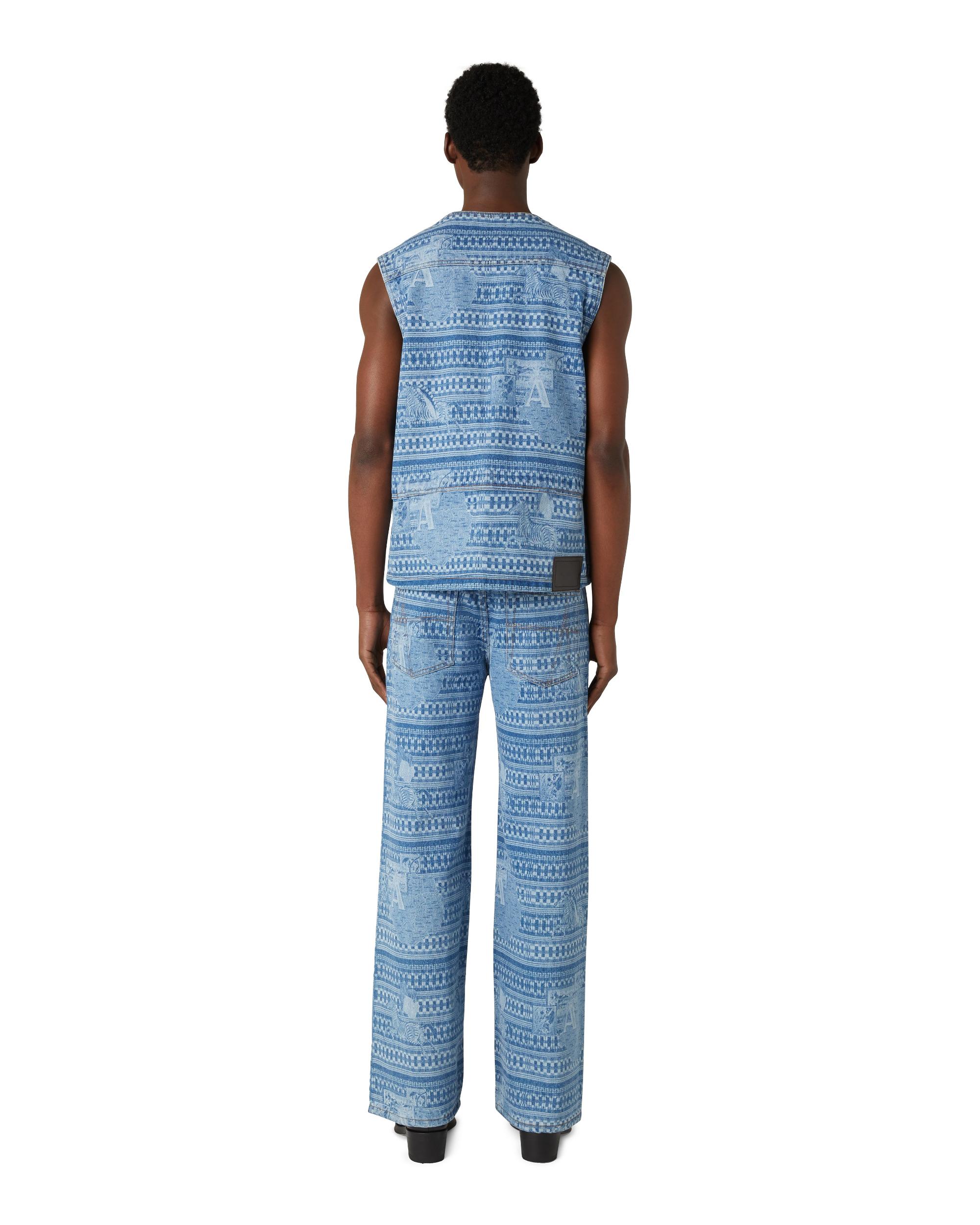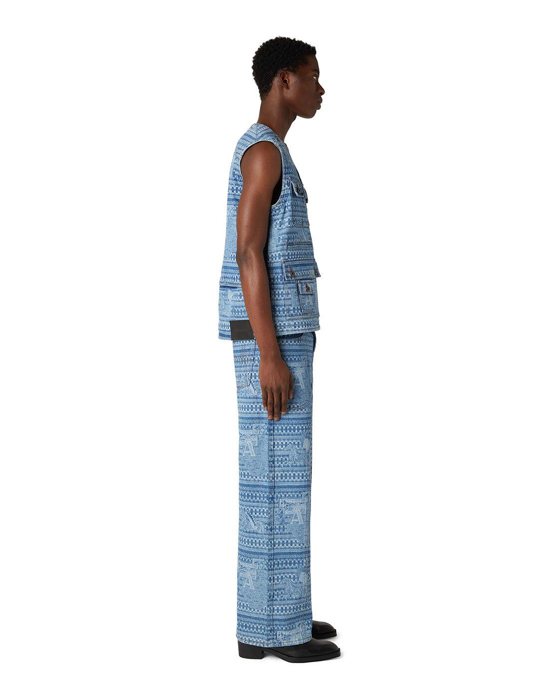 Description: Made in Italy, the Kampala Denim Vest is cut from 100% organic denim. Featuring antique brass buttons and a recycled leather patch, with both embossed with the Ahluwalia logo. Sizing: Click here for size guide. Model wears size medium. Height 188cm / 6'2'' For further sizing assistance please contact us on