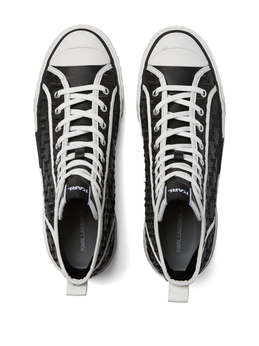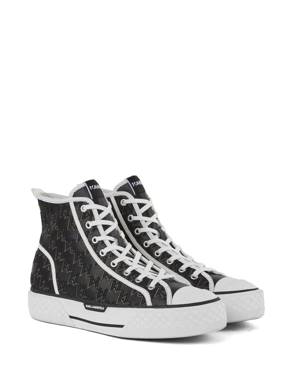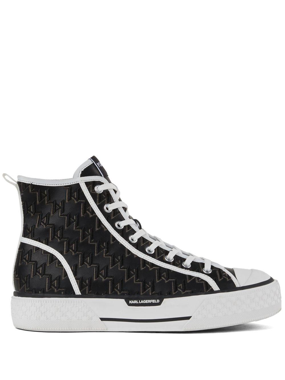 Karl Lagerfeld Kampus sneakers | Black | black/white | leather | front lace-up fastening | monogram pattern | logo patch to the side and tongue | pull-tab at the heel | contrasting toecap | round toe | branded insole | flat rubber sole | Leather/Fabric/Leather/Rubber | Hi-Tops | Sneakers | Shoes | Men