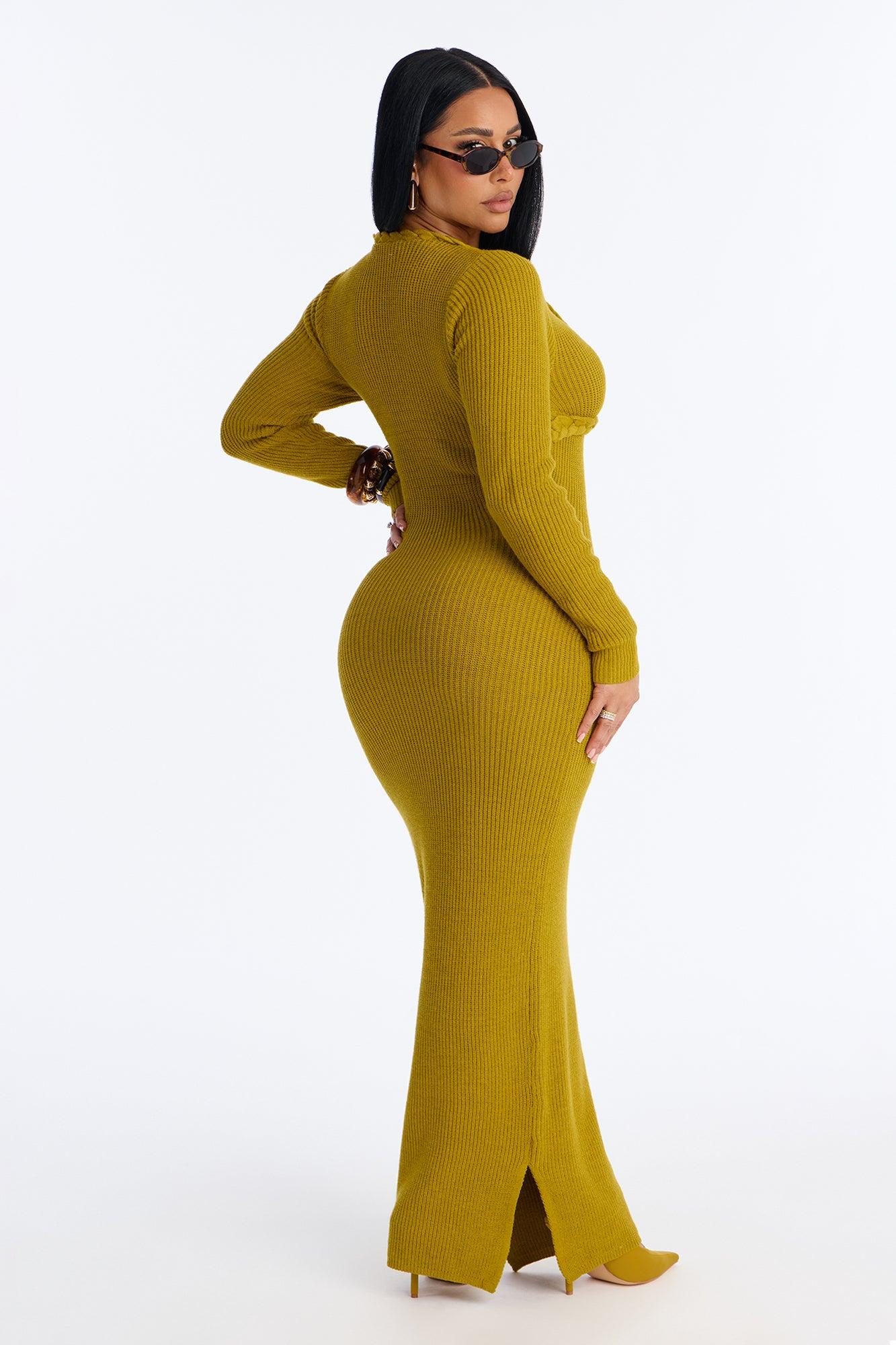 Kamryn Braided Sweater Maxi Dress - Chartreuse Female