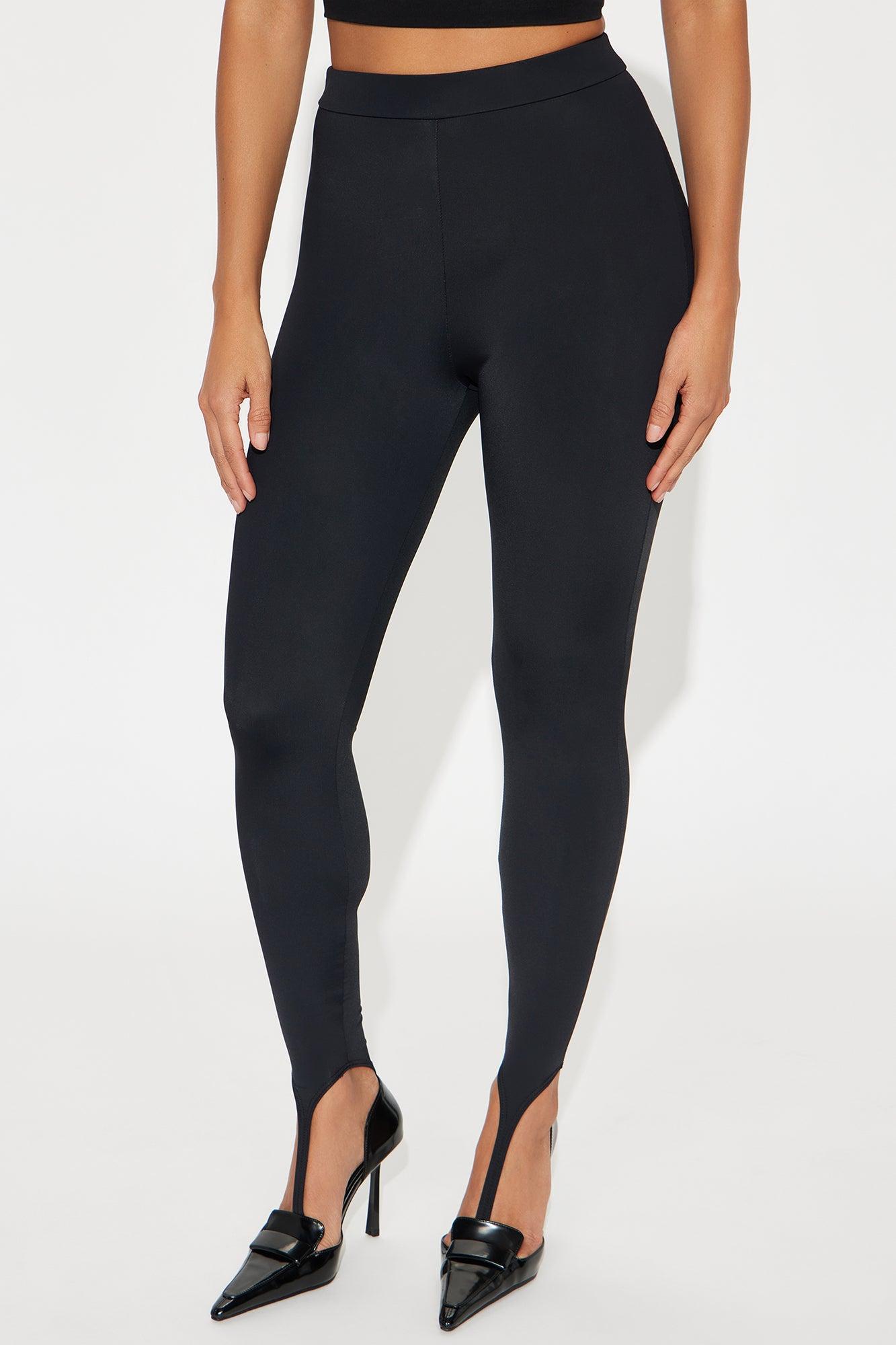 Available In Black And Chocolate. Stirrup Legging Stretch High Rise Elastic Waistband 82% Nylon 18% Spandex Imported