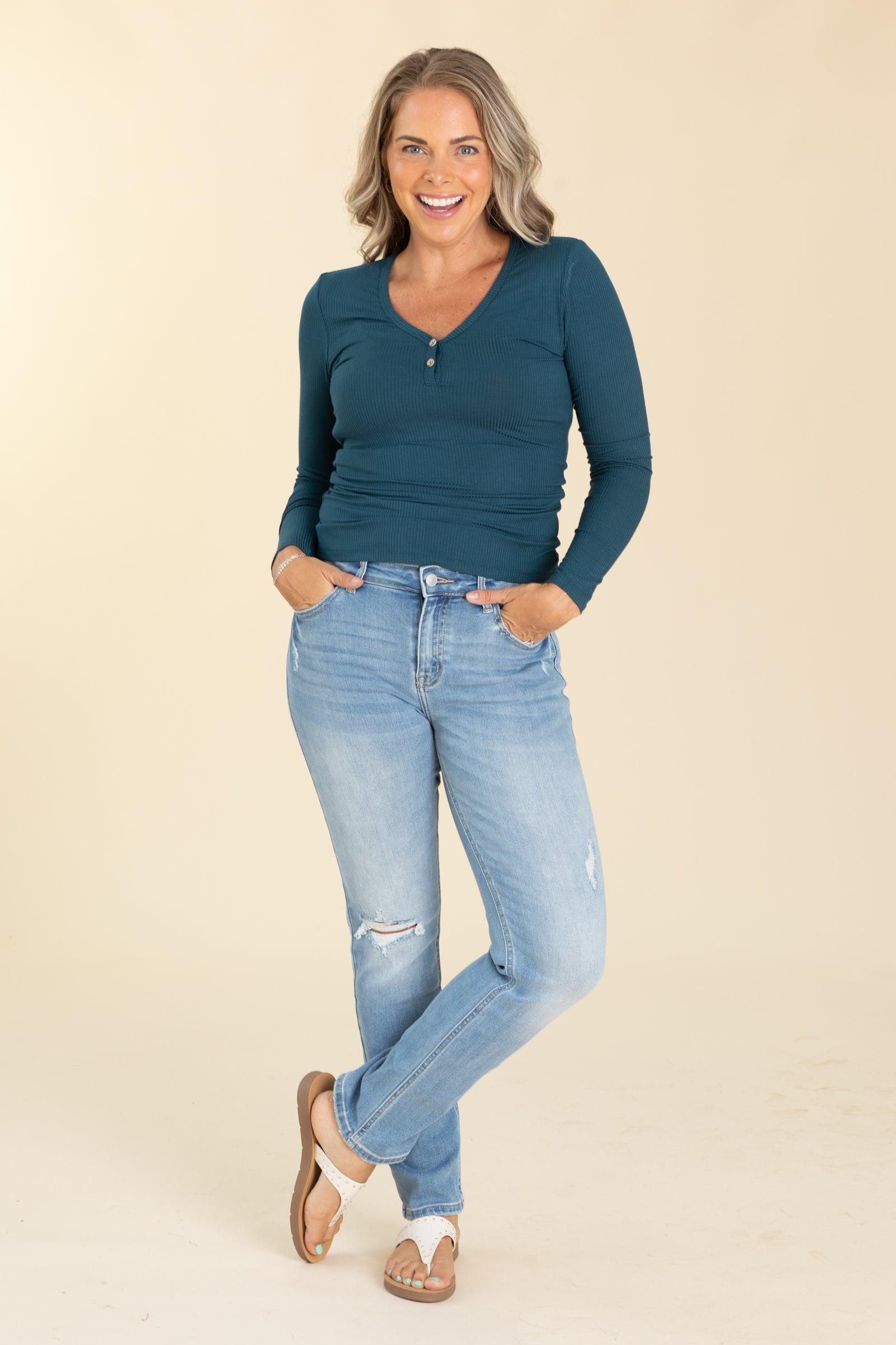 Product Details Color/Wash: Medium Wash Rise: High Rise Style: Straight Leg Brand: KanCan Material and Care 92.7% Cotton 5.7% Polyester 1.6% Spandex Machine Wash Cold Tumble Dry Low Size and Fit 1/24 Rise 10" Inseam 30" 3/25 Rise 10" Inseam 30" 5/26 Rise 10" Inseam 30" 7/27 Rise 10" Inseam 30" 9/28 Rise 10.5" Inseam 30" 11/29 Rise 11" Inseam 30" 13/30 Rise 11.5" Inseam 30" 15/31 Rise 11.5" Inseam 30" Erica is 5'7 and wearing a 5/26